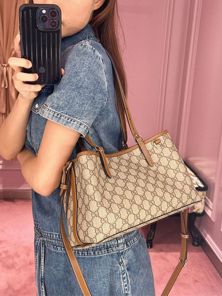 スタッフコメント 2024年秋冬コレクションで登場した、グッチのエレガンスとクラフトマンシップの歴史を新たな視点で解釈した最新ライン【GGエンブレム】。乗馬の世界にインスピレーションを得た番号入りのハンドルとストラップが特徴的な【スモールトートバッグ】は、長財布やスマートフォンなどの必需品をしっかり収納できるGUCCIならではのカジュアルさと上品さと兼ね備えた逸品でございます。