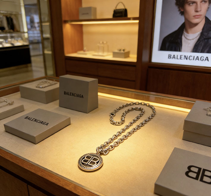 メンズ 最高級バレンシアガスーパーコピー BALENCIAGA シルバー ロゴペンダント ネックレス 2628466 バレンシアガ ネックレス メンズ