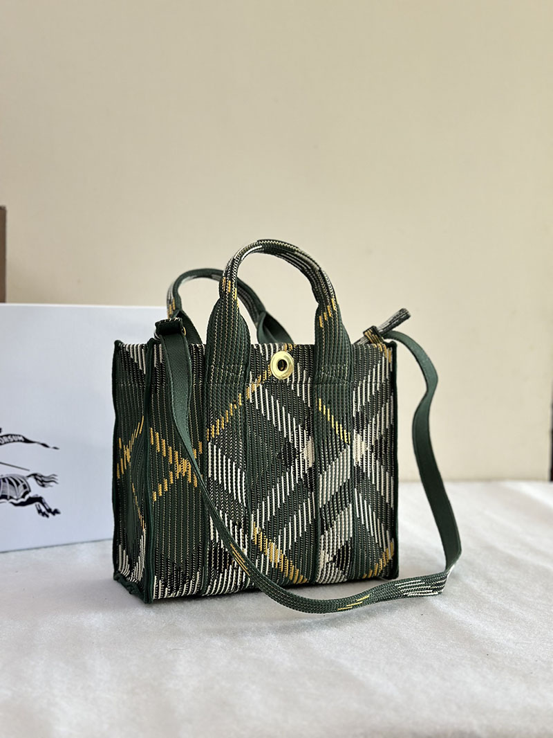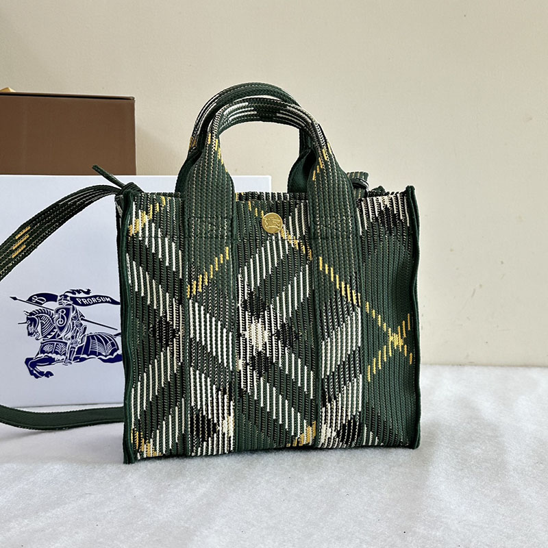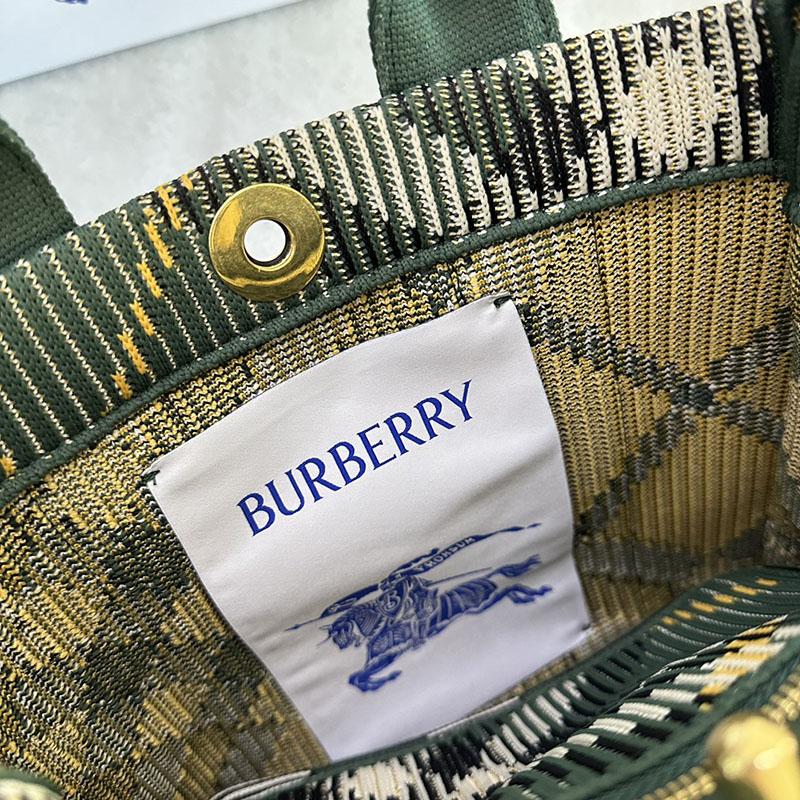 最高級バーバリースーパーコピー ミニ チェック ニットトート 2521559 アイビー 超N品 バーバリー トートバッグ 布