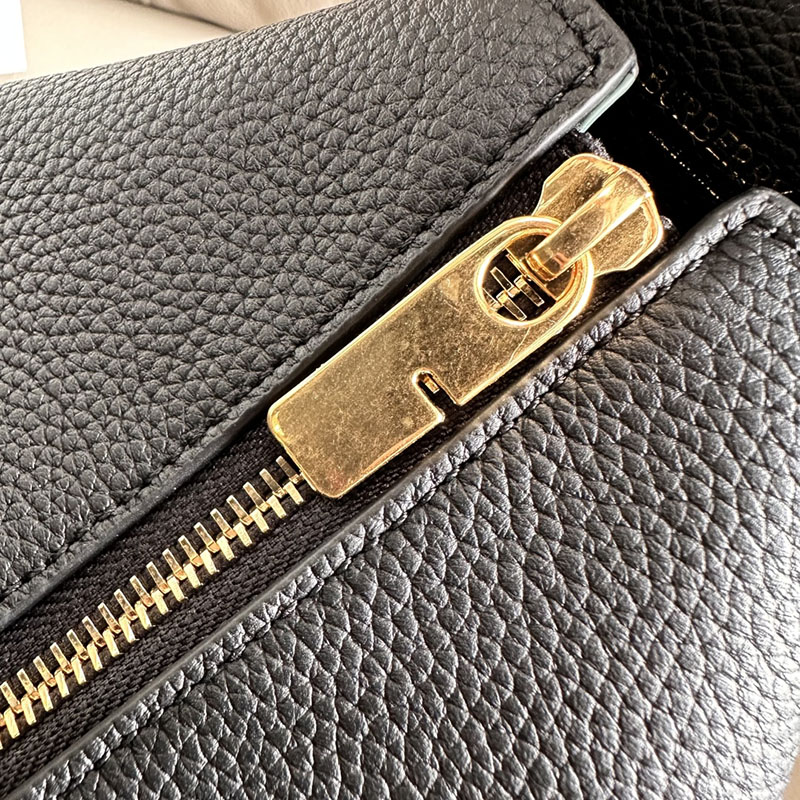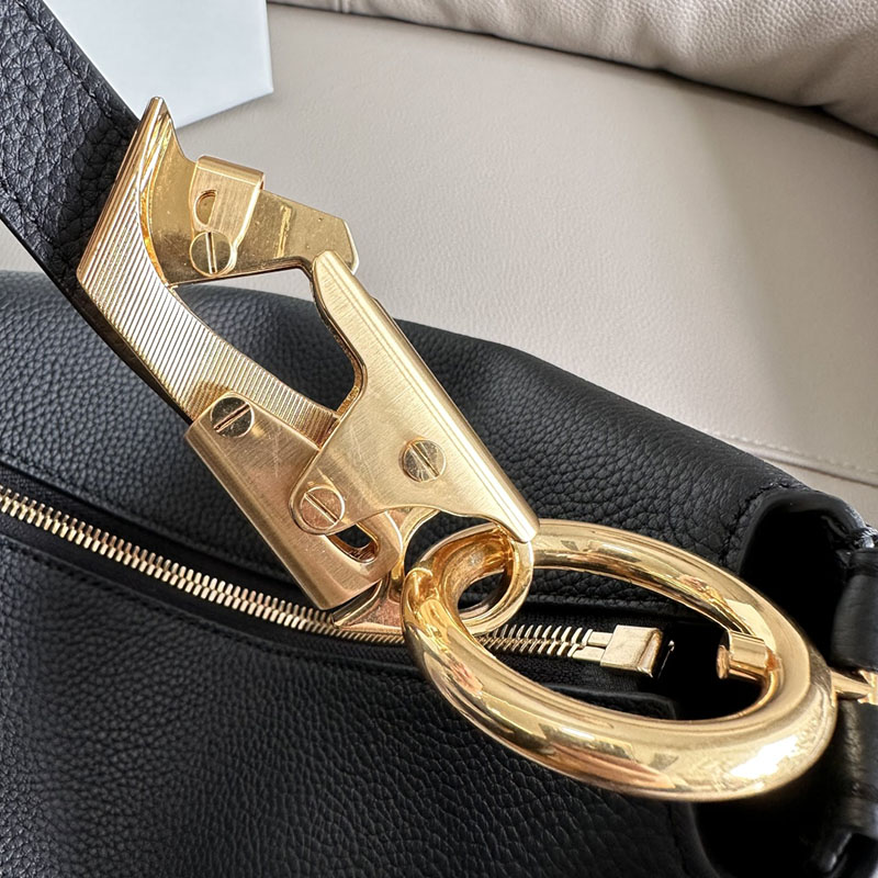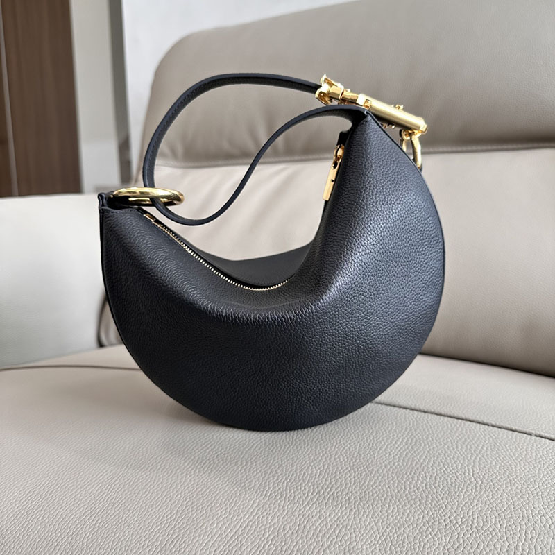 ナイトバッグを再構築したグレイニーカーフレザーのイタリア製ミニショルダーバッグ。「馬上の騎士」デザインからインスパイアされたホースクリップ金具が目を引きます。しなやかなスエードのライニングを施した柔らかなシルエット。金具の取り付けか所を変えてストラップの長さを調節できます。