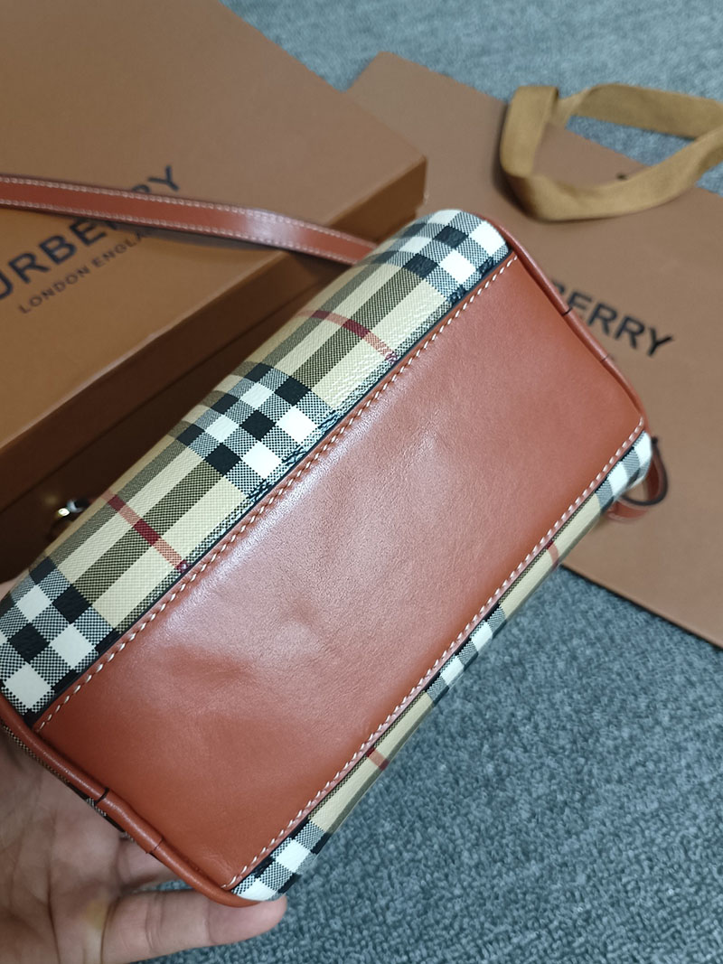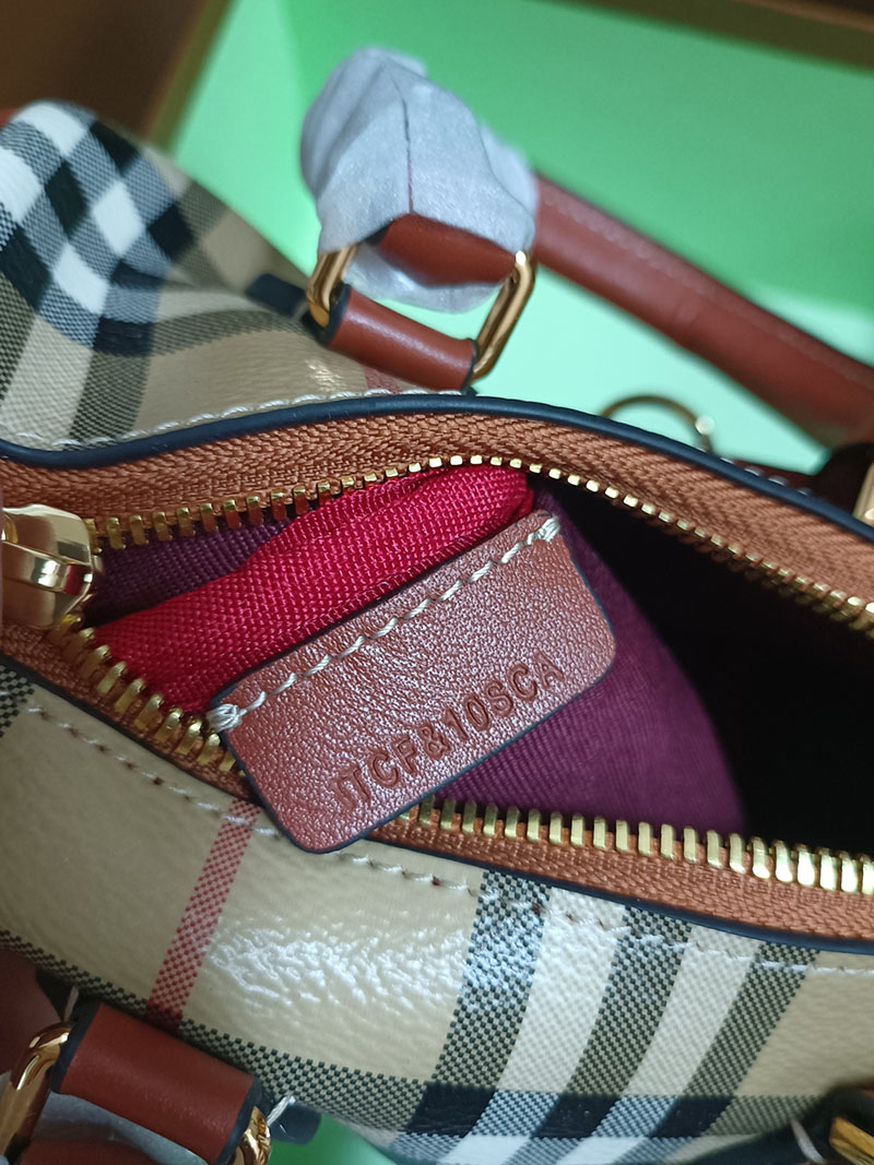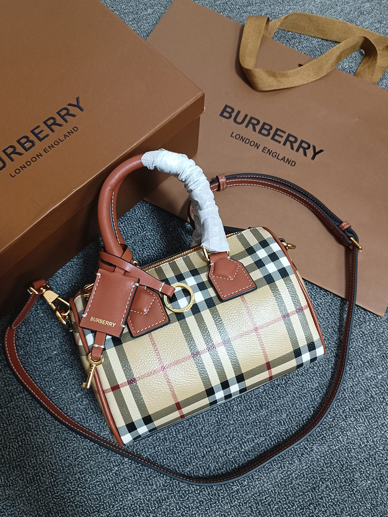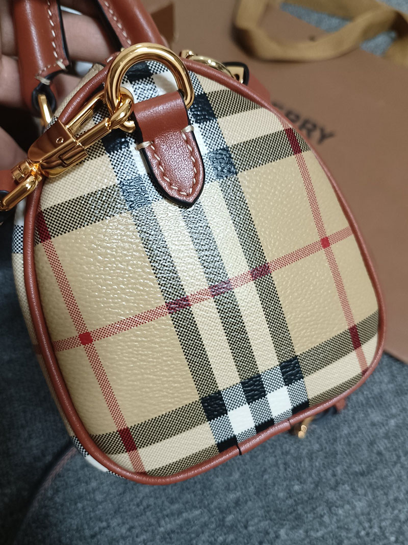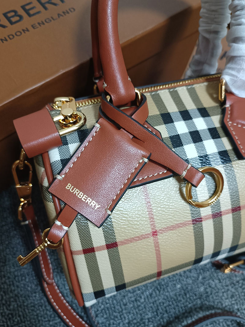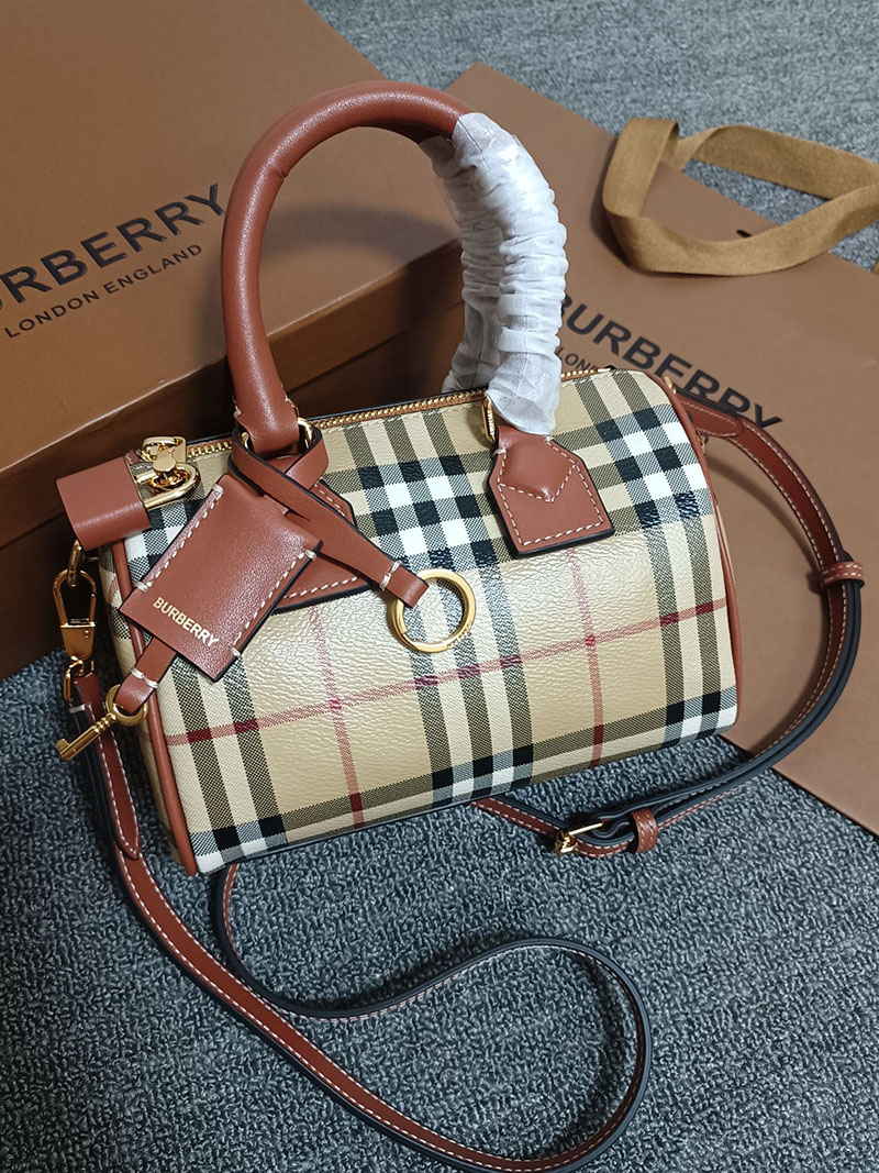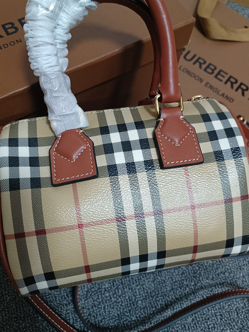 Burberry バーバリー ミニ チェック ボウリングバッグ 81097911 アーカイブベージュ/ブライアーブラウン 超N品 バーバリー ボストンバッグ レディース