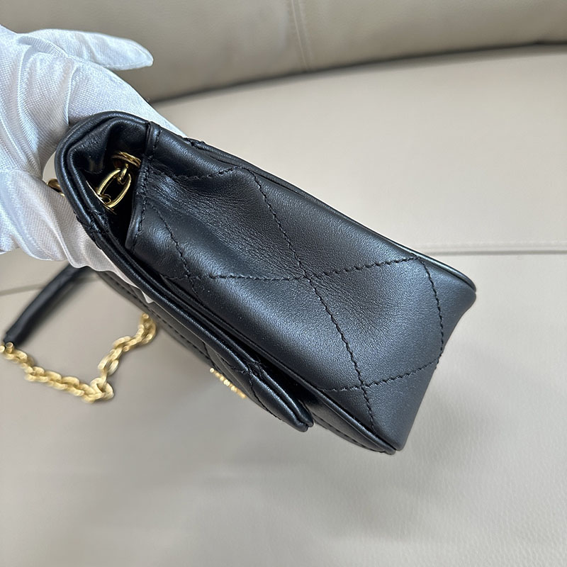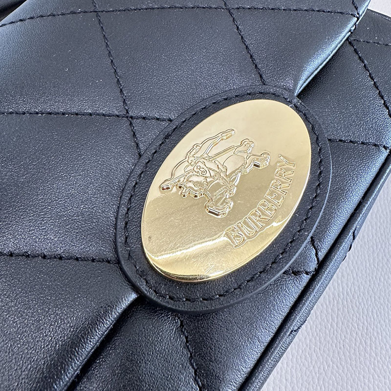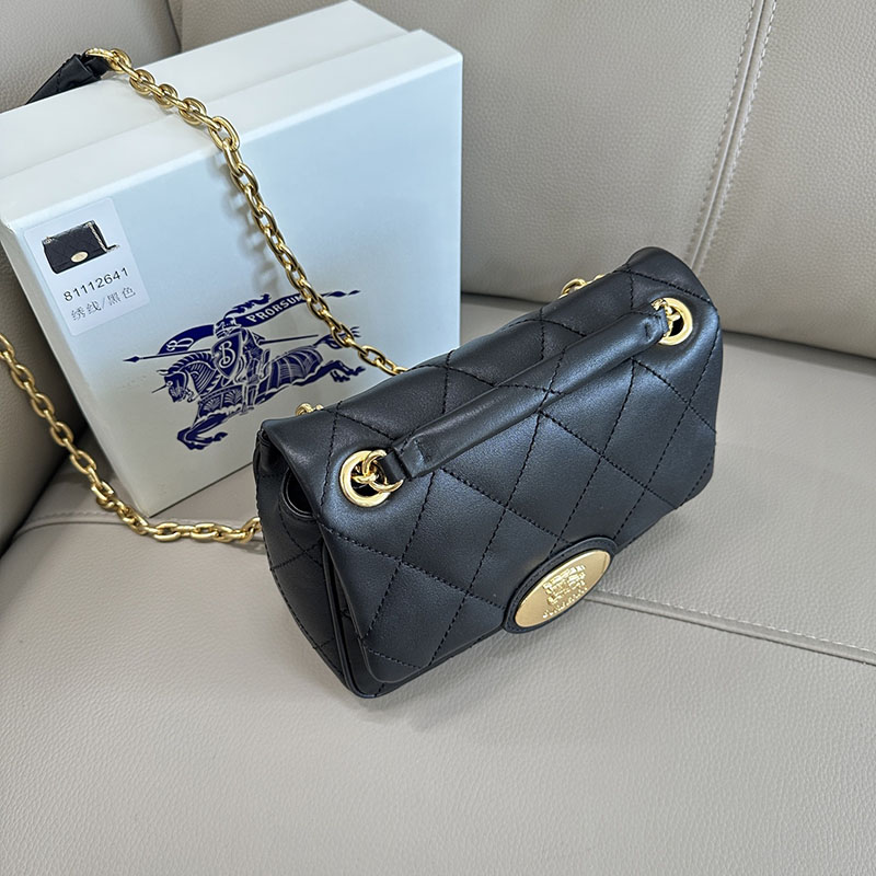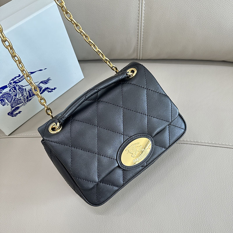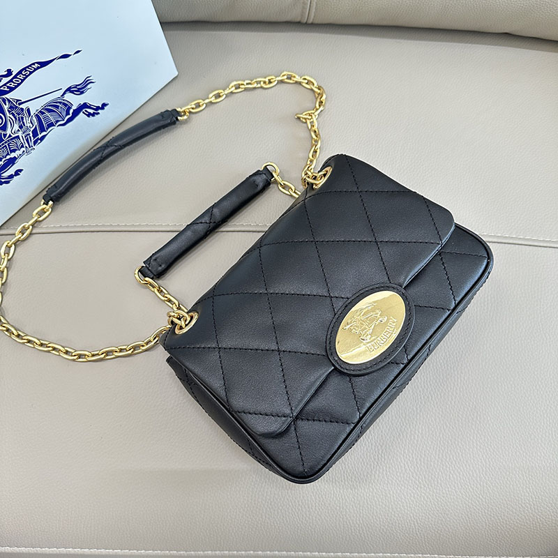 キルティング加工のカーフレザーを使用したクラシックなイタリア製バッグ。しなやかで質感のある仕上がりです。1980年代のバーバリーバッグにあしらわれていたメタル製のアーカイブモチーフ「ナイトスタンプ」をフィーチャーしたコンパクトなスタイル。チェーン&レザーのライトウェイトなストラップでショルダーとしても、クロスボディバッグとしてもご使用いただけます。