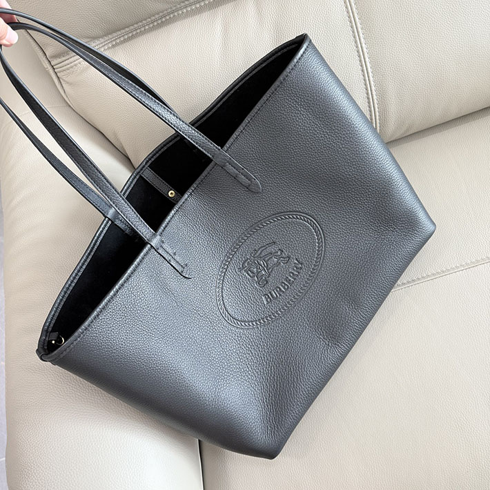 アウトドアからインスピレーションを得た、イタリア製のハイランド トートバッグ。グレイニーカーフレザーを使用し、洗いをかけて柔らかに仕上げました。スリムなストラップをフィーチャーしたライニングなしのデザイン。1980年代のバーバリーバッグにあしらわれていたアーカイブモチーフ「ナイトスタンプ」のエンボスディテールがアクセントを添えます。