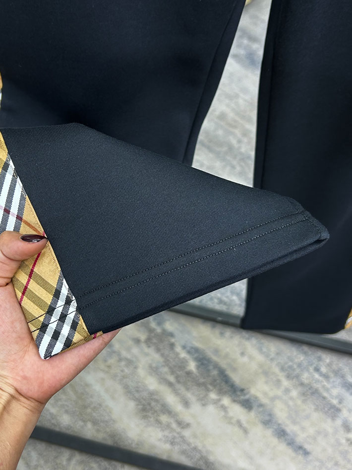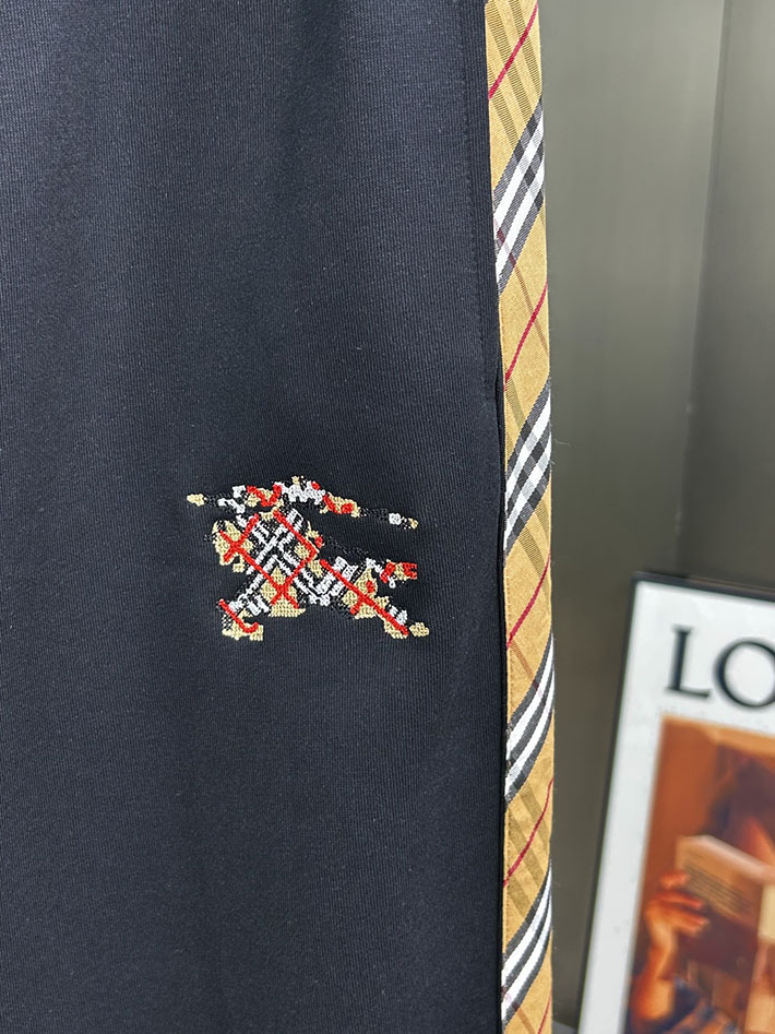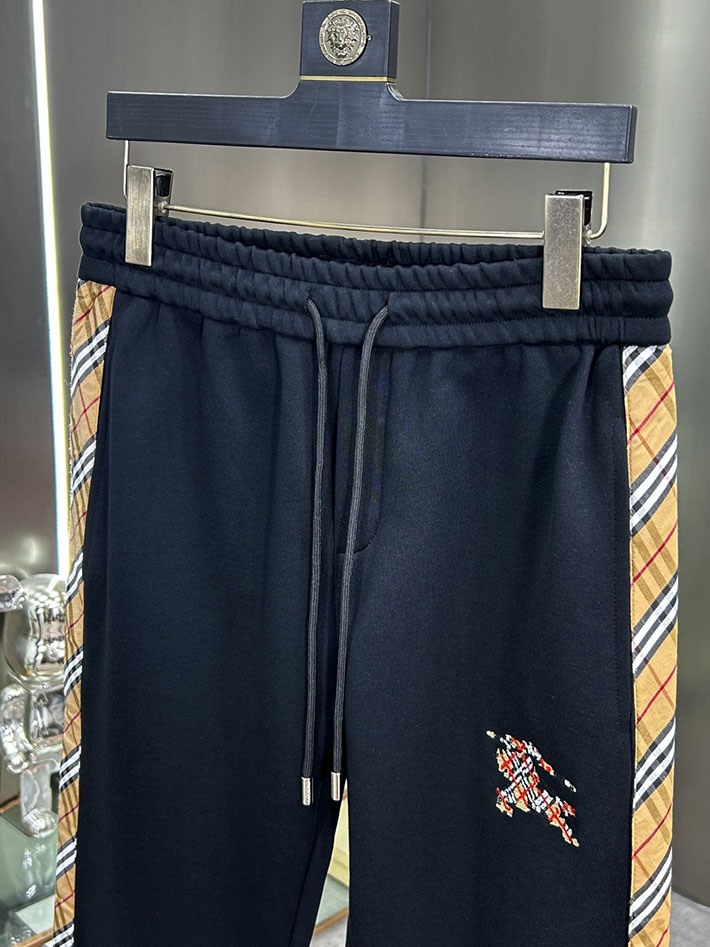 最高級バーバリースーパーコピー BURBERRY ヴィンテージチェックパネルコットンパンツ ボトムス ブラック 2525245 バーバリー パンツ コーデ