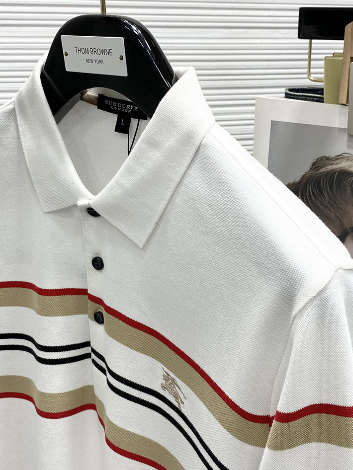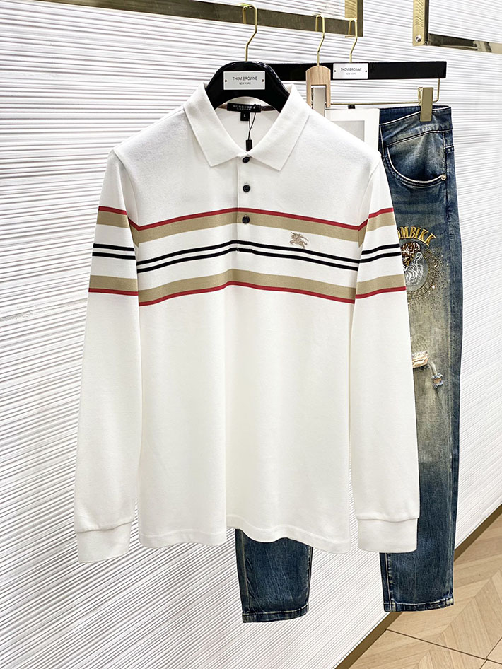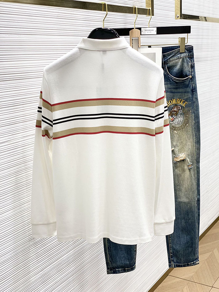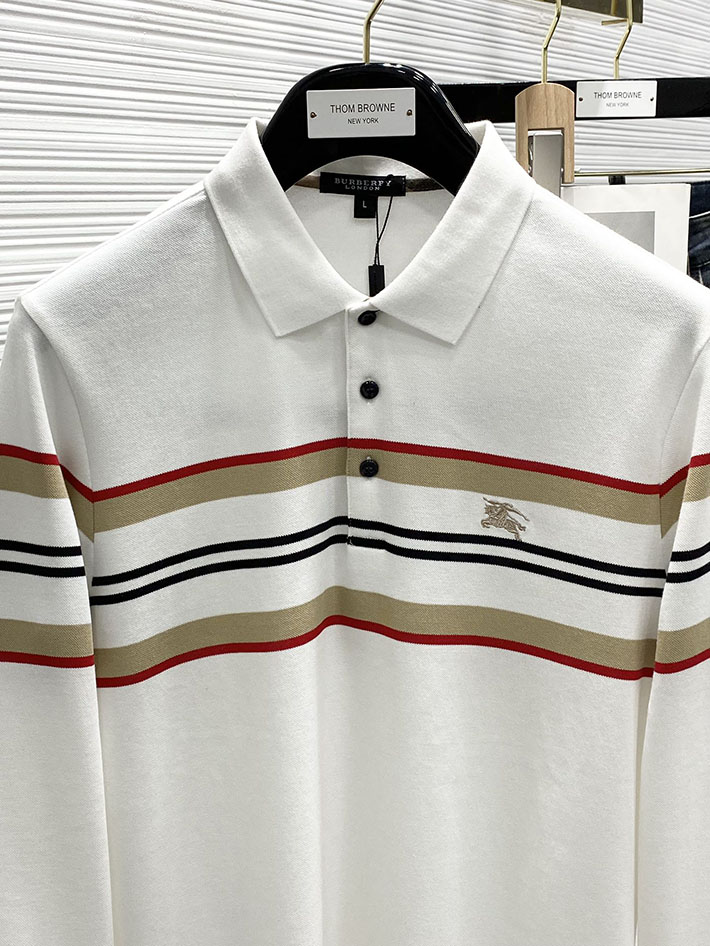 最高級バーバリースーパーコピー BURBERRY アイコンストライプ ポロシャツ 長袖 ホワイト 2525665 バーバリー ポロシャツ メンズ