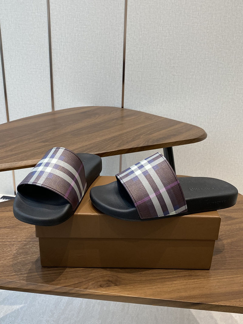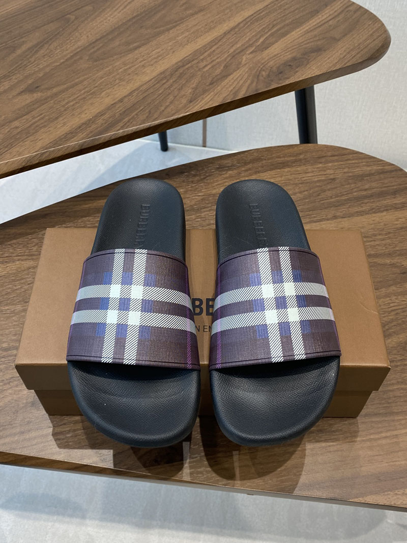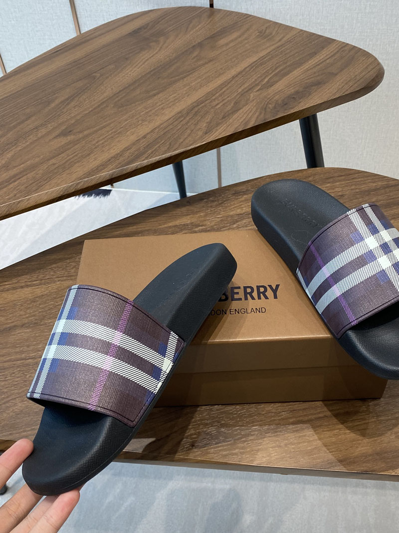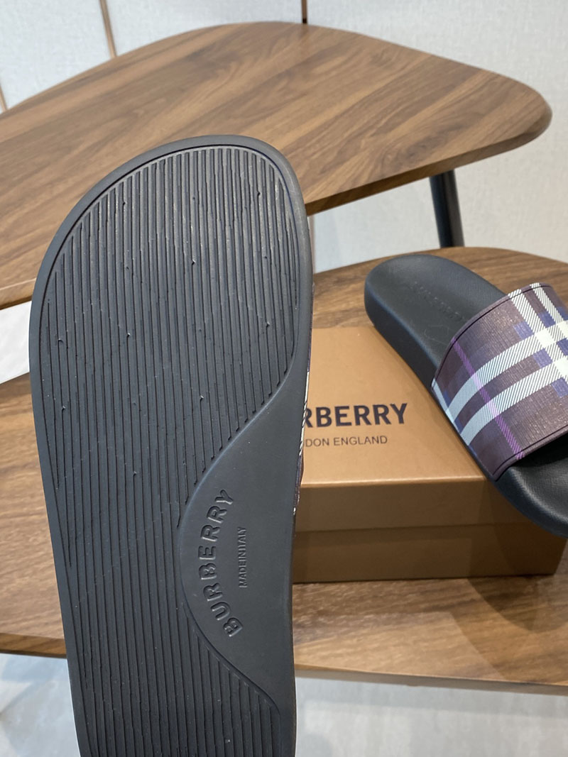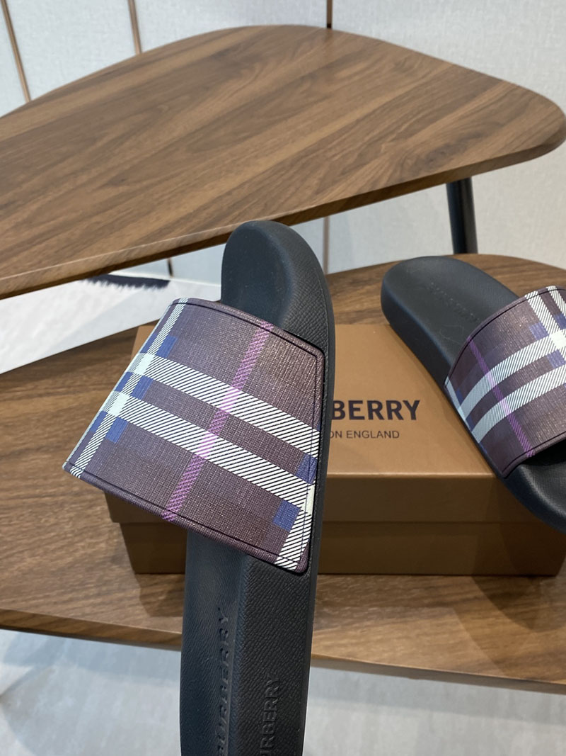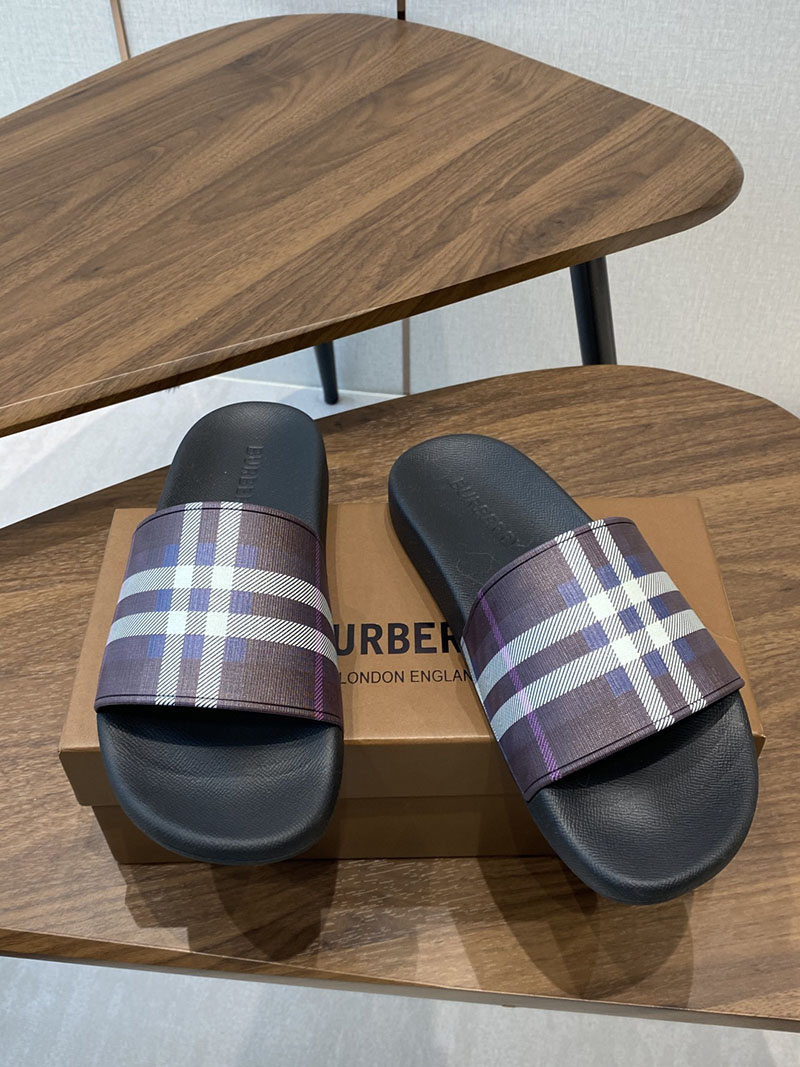 最高級バーバリースーパーコピー バーバリーサンダルコピー チェック スライド 2521692 ブラック/パープル N品 バーバリー サンダル メンズ