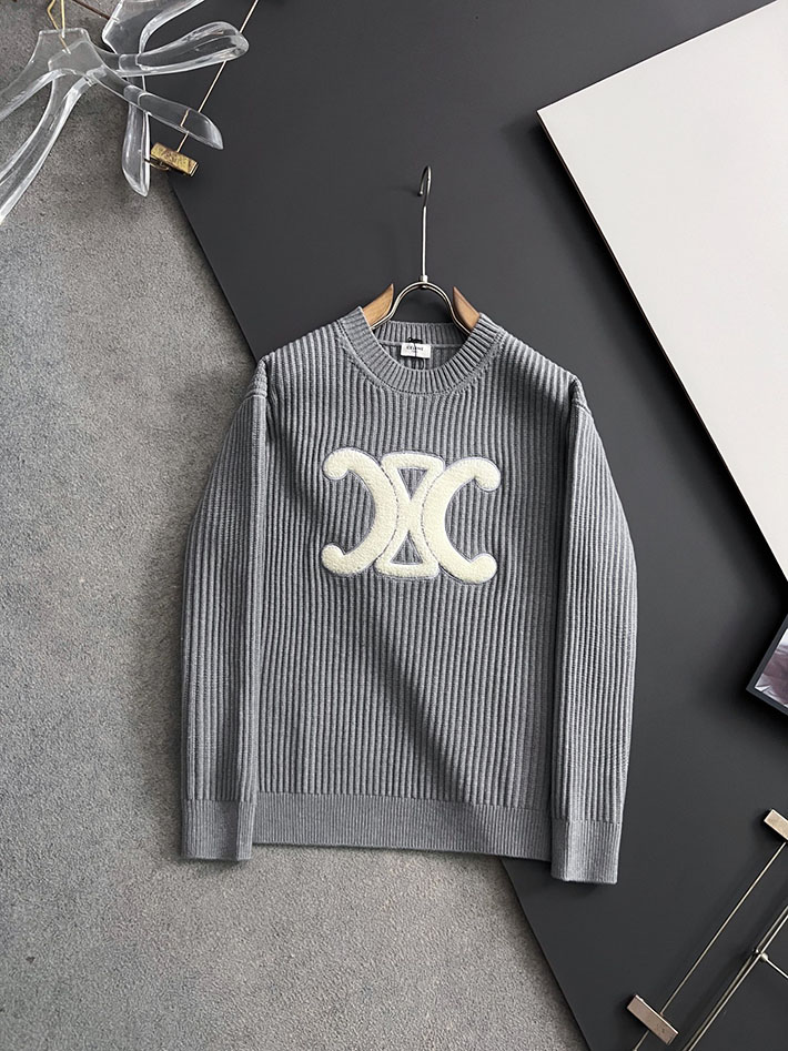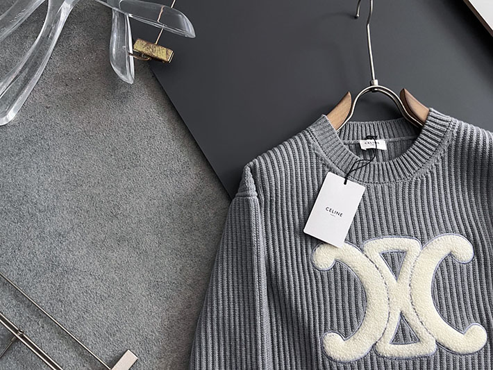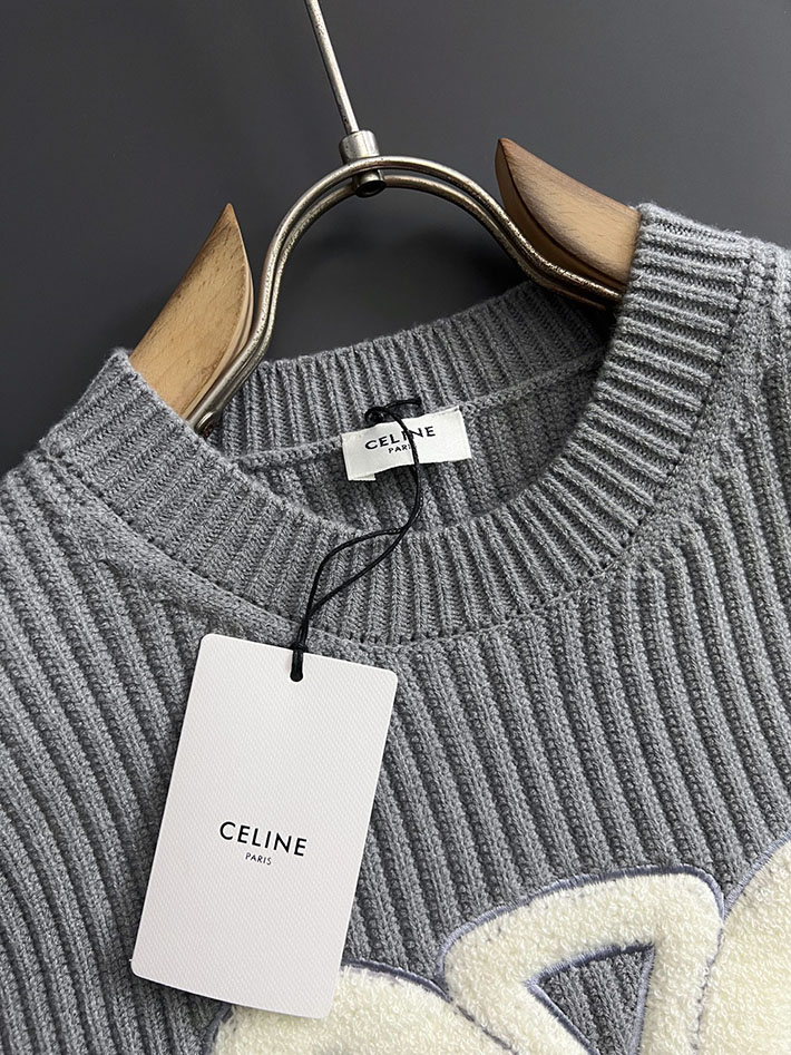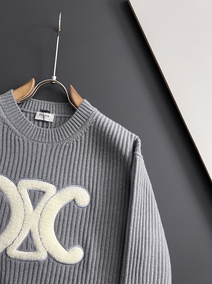 最高級セリーヌスーパーコピー CELINE リブウール クルーネックニット レディース メンズ グレー 2525321 セリーヌ ニット レディース
