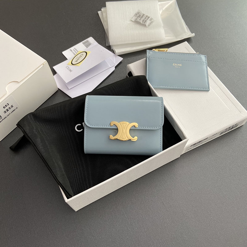 最高級セリーヌスーパーコピー CELINE スモール フラップウォレット トリオンフ ペールブルー 2526586 セリーヌ 財布 アウトレット