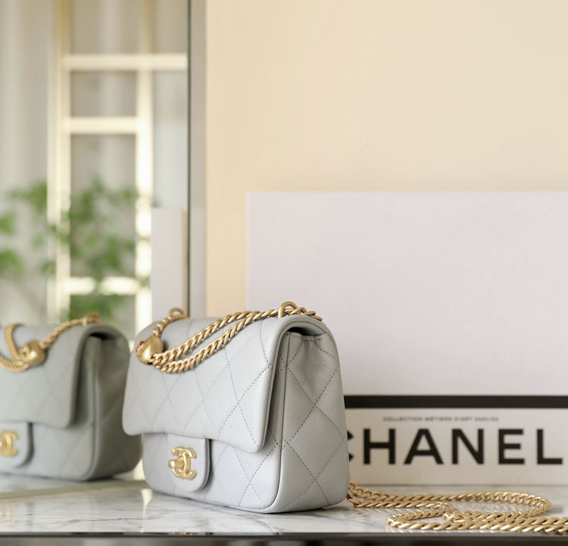 シャネル 新作バッグ H品 CHANEL フラップバッグ ハート型ボールチェーン AS3829 グレー 2520143 シャネル ミニフラップバッグ 使い勝手