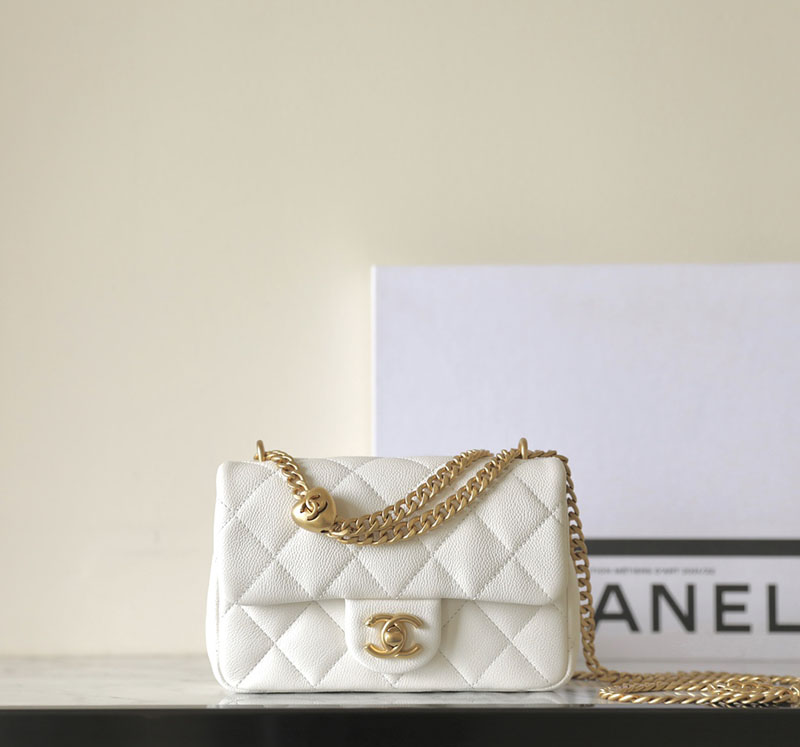 シャネル 新作バッグ H品 CHANEL フラップバッグ ハート型ボールチェーン AS3829 ホワイト 2520144 シャネル フラップバッグ キャビアスキン