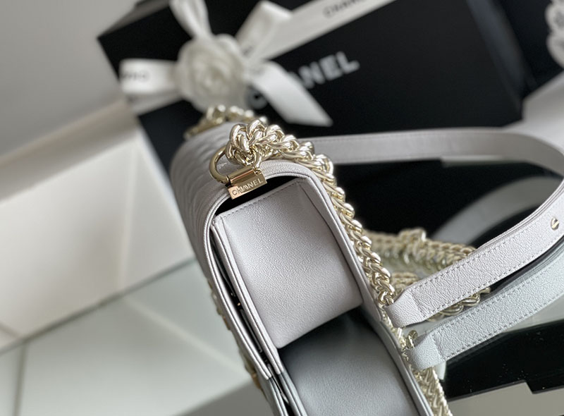 シャネル 新作バッグ H品 CHANEL シェブロン ボーイシャネル20 チェーンウォレット グレー 2520238 ボーイシャネル スモール