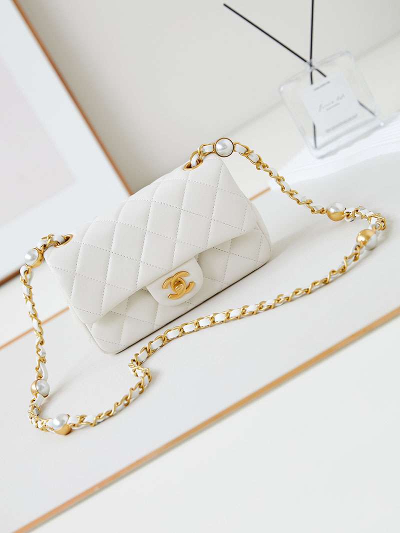 シャネル 新作バッグ H品 CHANEL ミニ クラシック フラップ ショルダーバッグ AS4947 ホワイト 2520249 シャネル ミニフラップバッグ