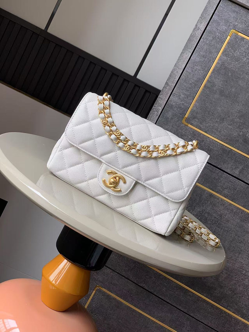 シャネル 新作バッグ H品 CHANEL 25P Wチェーン スモールフラップバッグ ホワイト 2520293 シャネル マトラッセ キャビアスキン