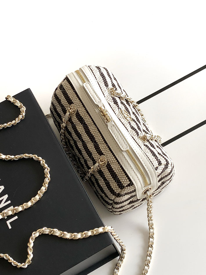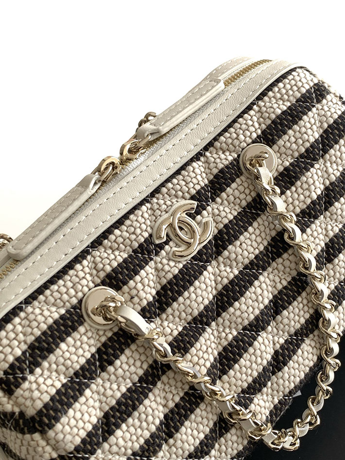 シャネル 新作バッグ 2026 CHANEL チェーンクラッチバッグ プリント ファブリック ホワイト ブラック 2629522 シャネル バッグ 安い順