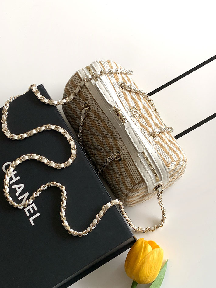 シャネル 新作バッグ 2026 CHANEL チェーンクラッチバッグ プリント ファブリック ホワイト ブラウン 2629523 シャネル バッグ アウトレット