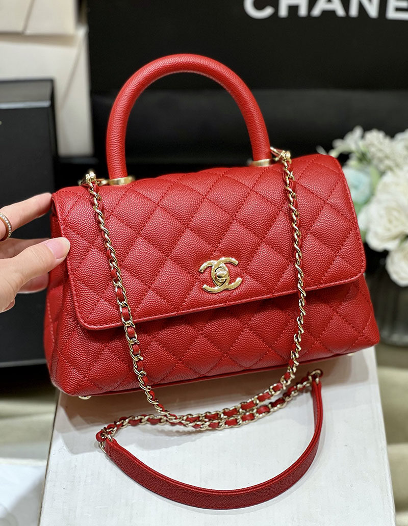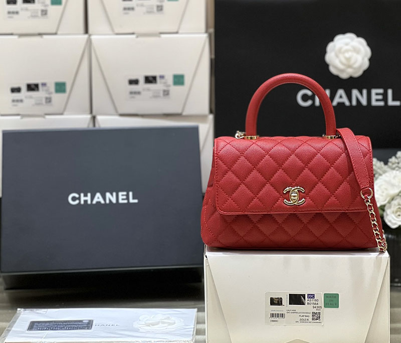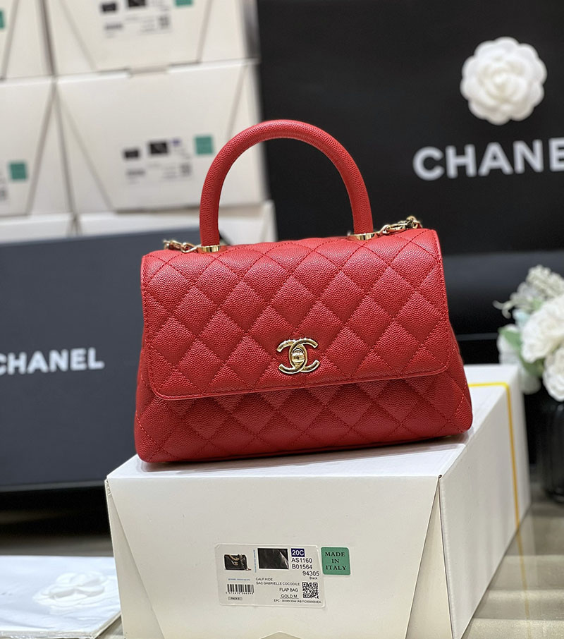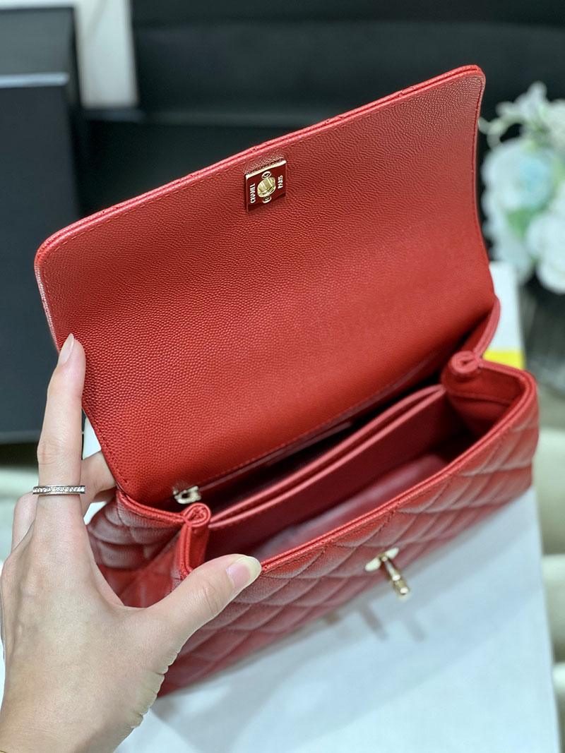シャネル 新作バッグ H品 CHANEL トップハンドル フラップ バッグ 2WAY チェーンショルダー レッド A92990 B05061 NAAUM