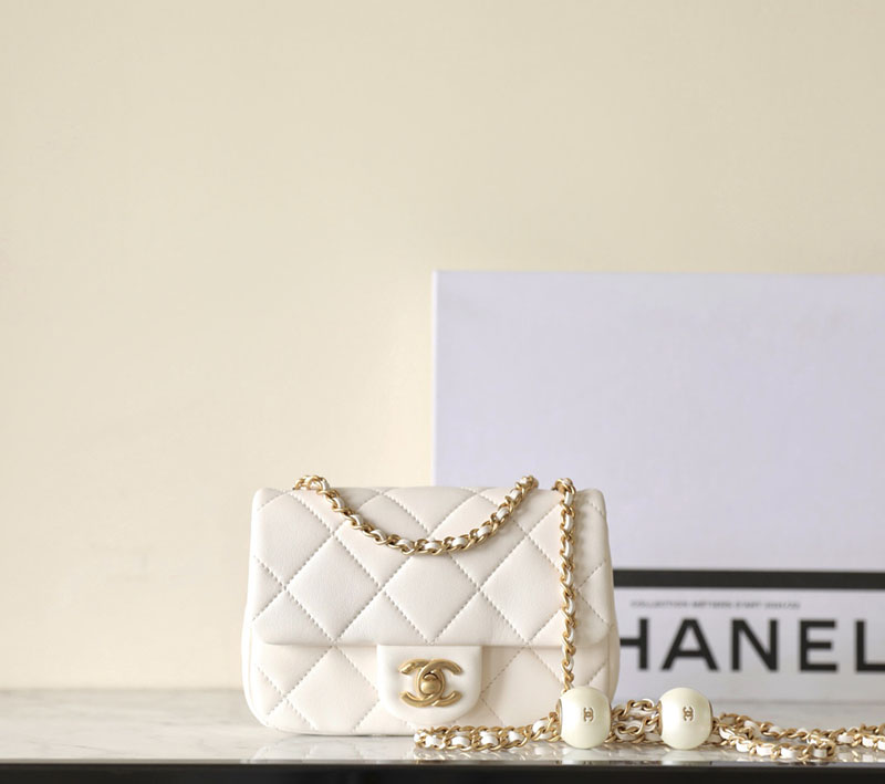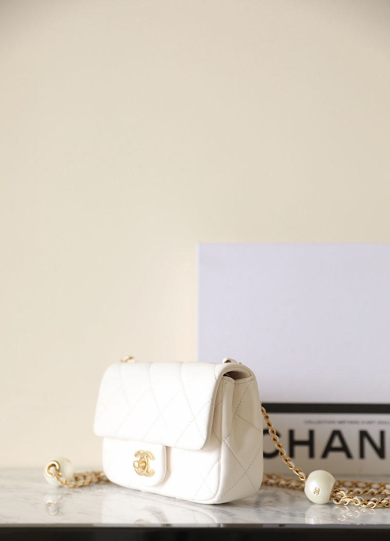 シャネル 新作バッグ H品 CHANEL 24SS LOOK40 ミニ フラップ バッグ ラムスキン ホワイト AS4868 B16574 10601