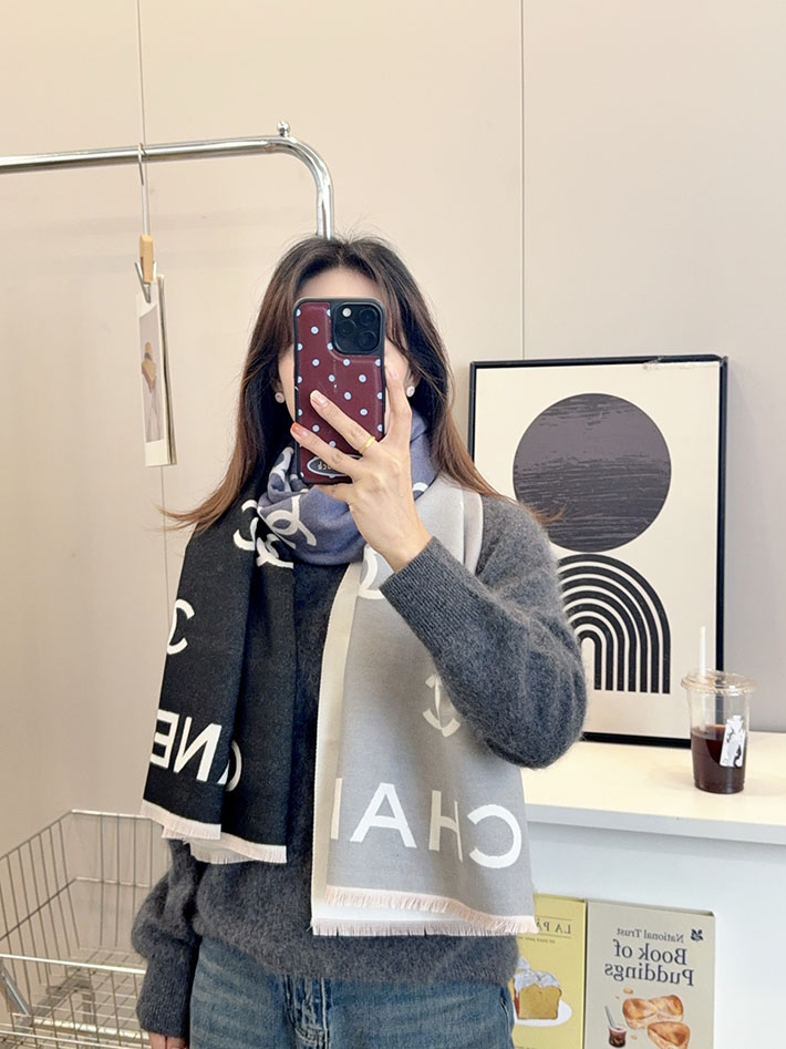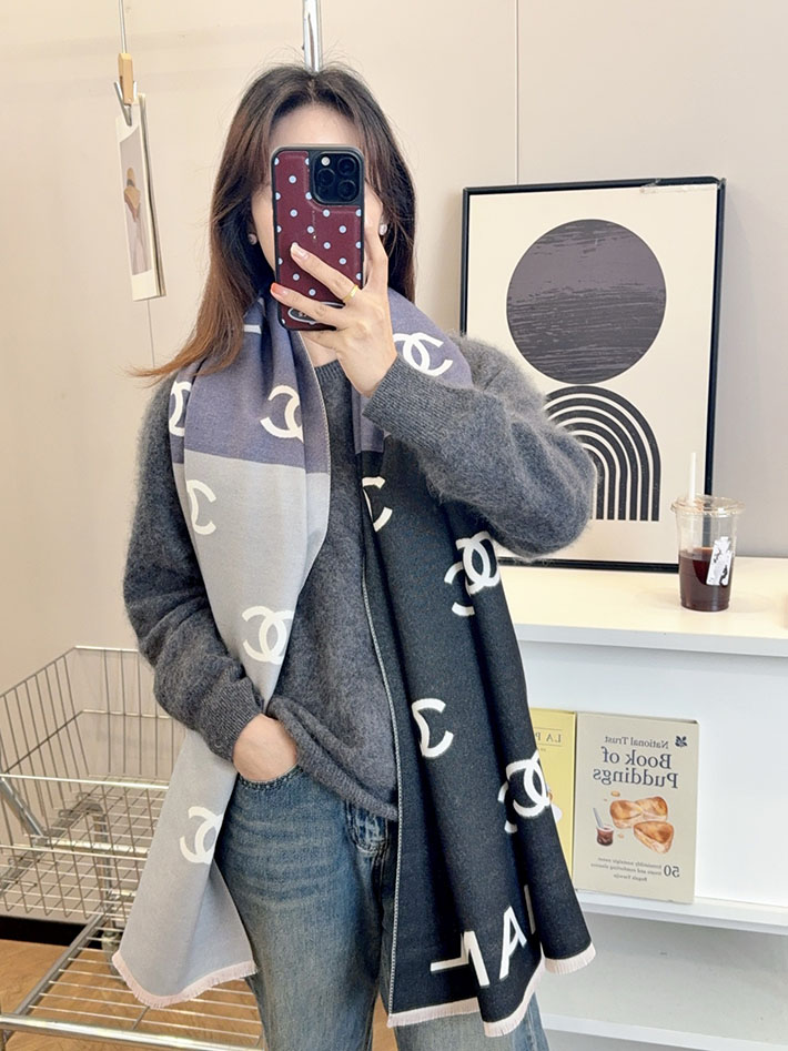 最高級シャネルスーパーコピー CHANEL カシミヤ ウールブレンド 大判 ストール フリンジ ココマーク CCマーク cc25103011 シャネル2025マフラー