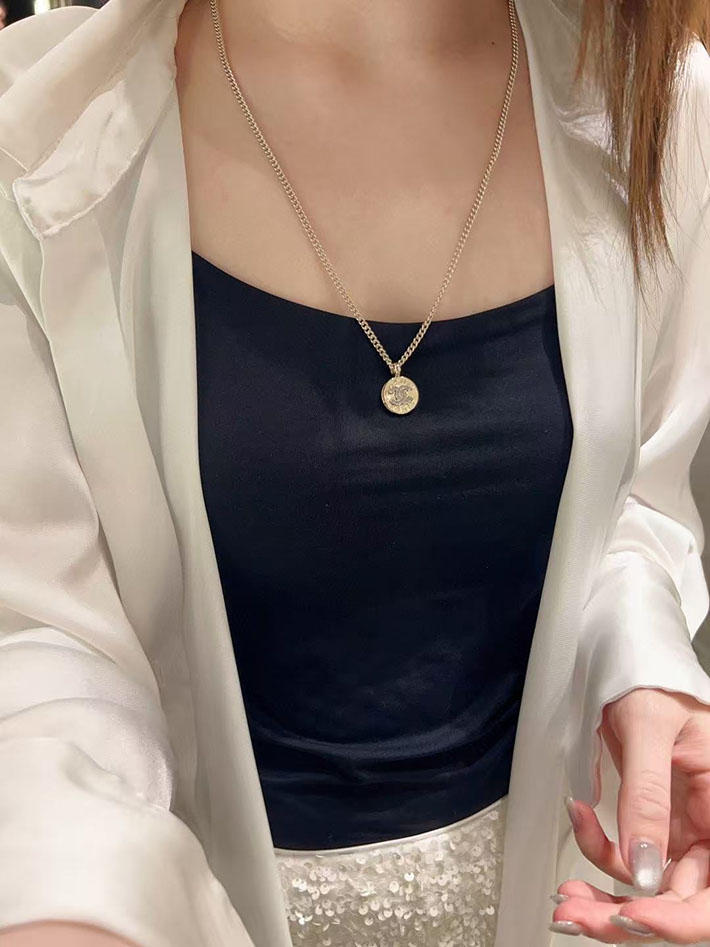 商品名:ネックレス レディース チェーン ペンダント ラインストーン ココマーク CCマーク
