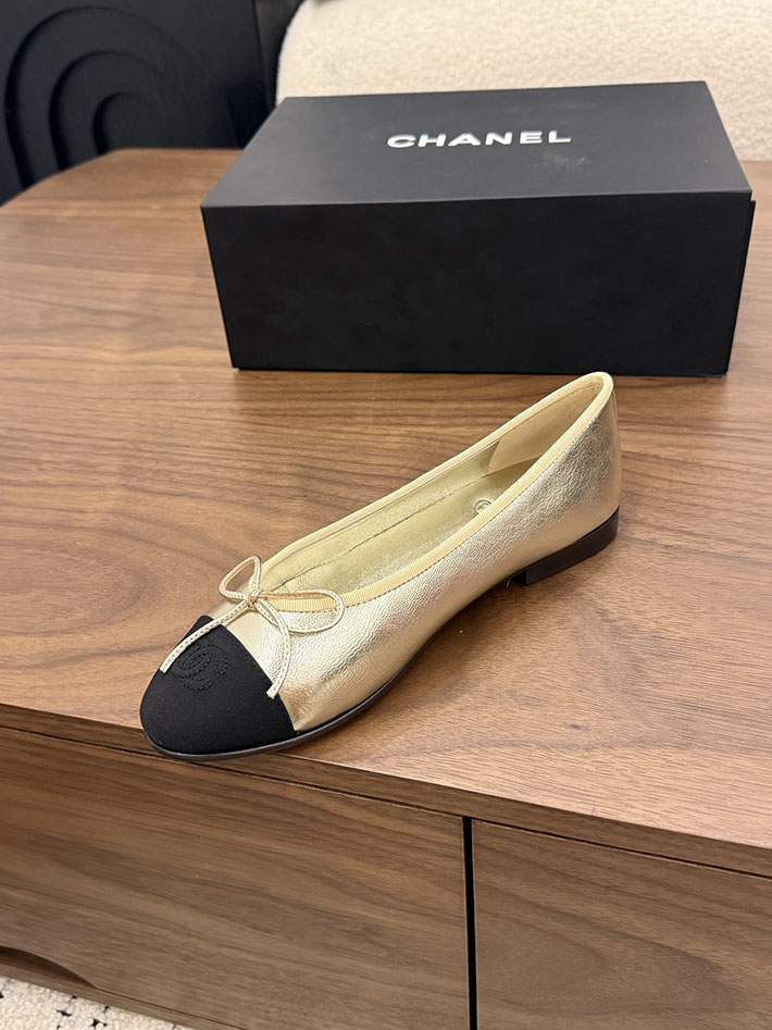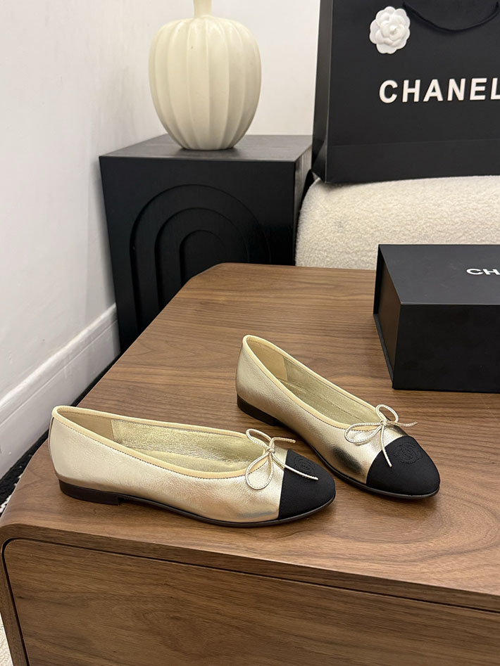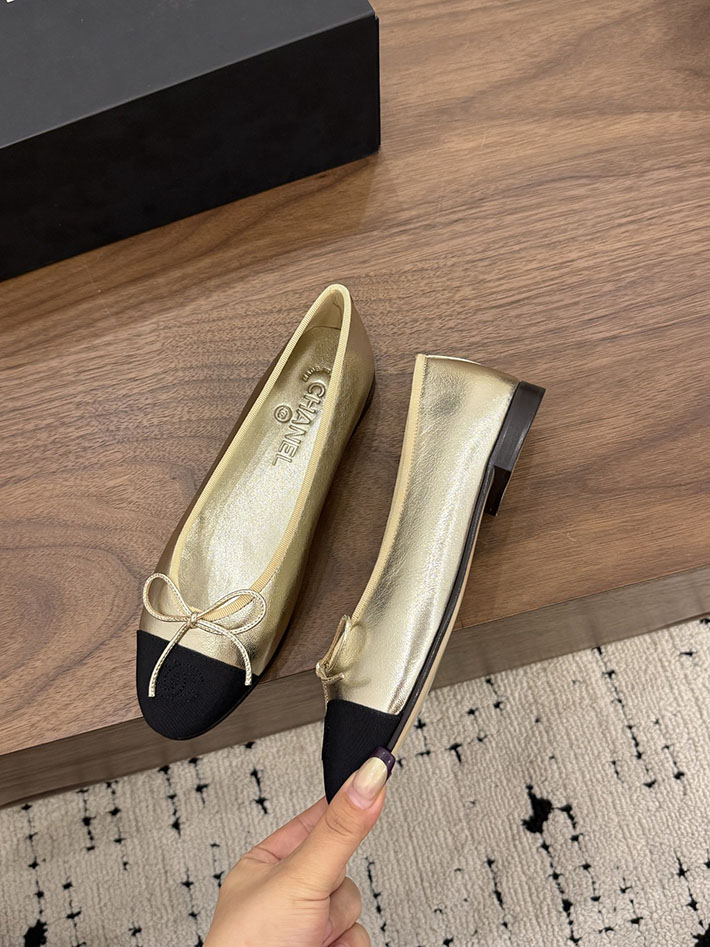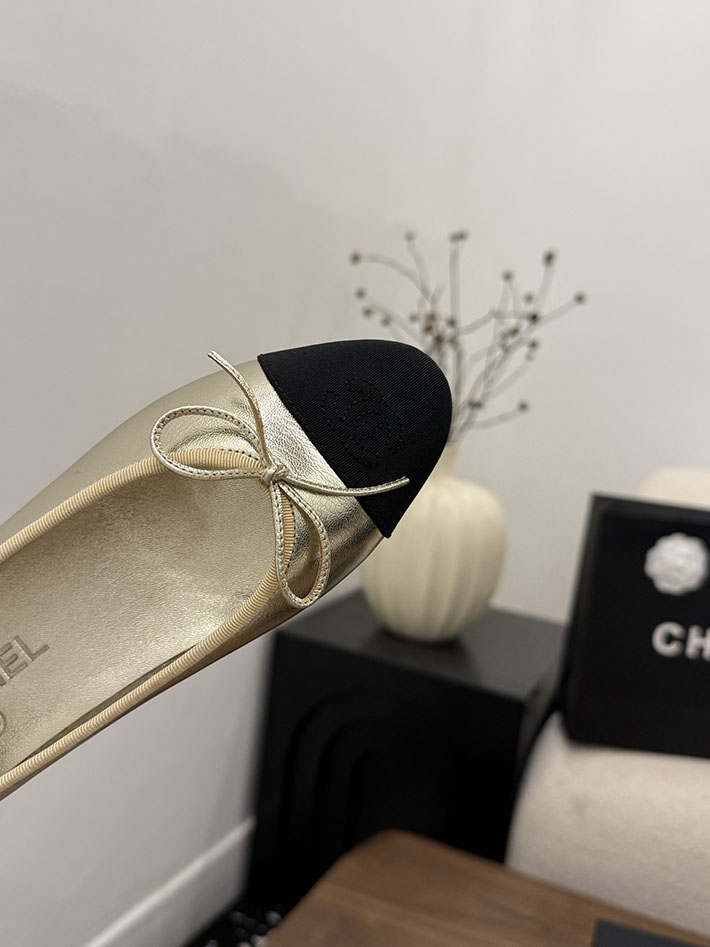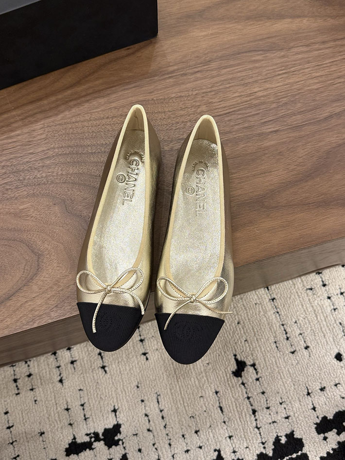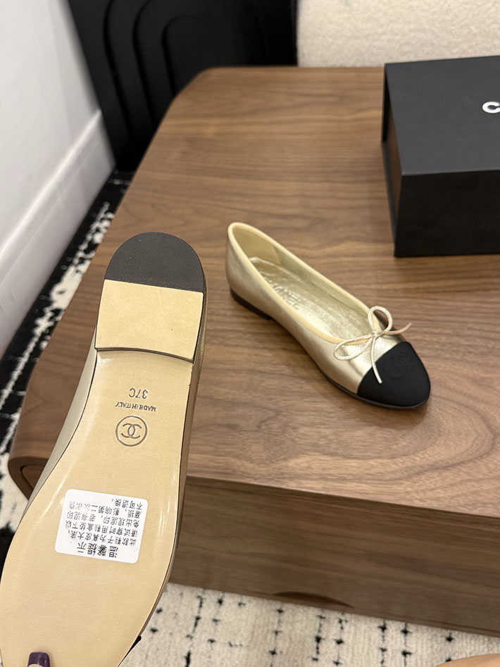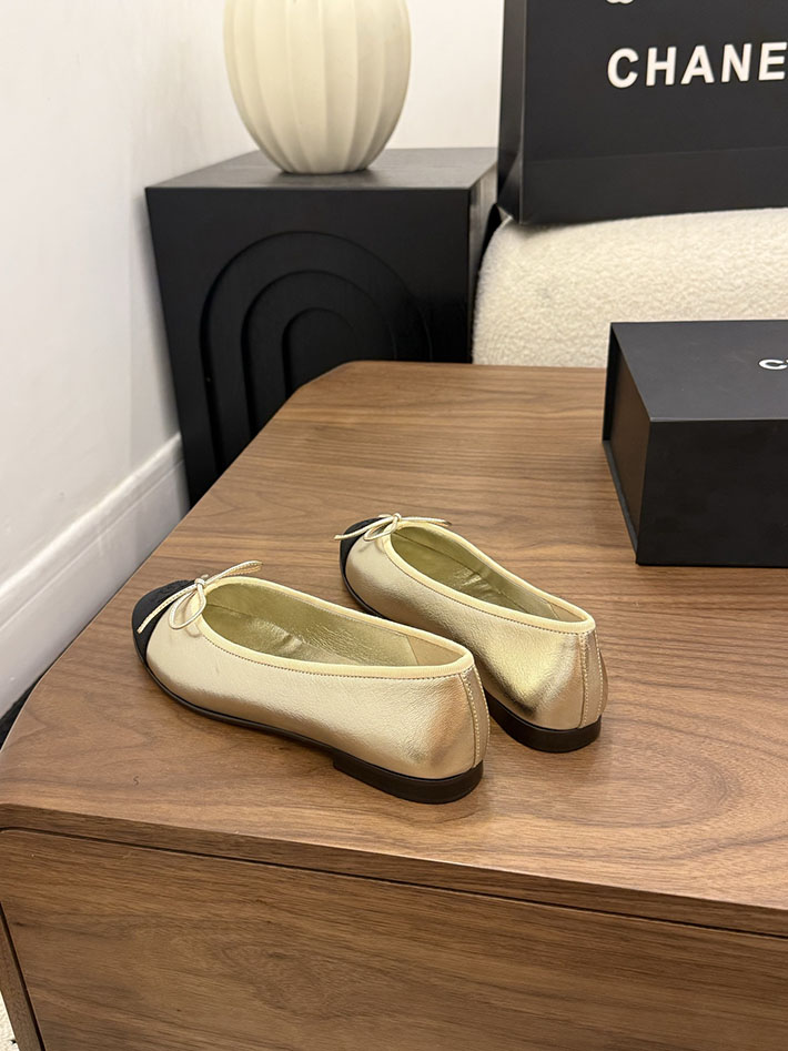最高級シャネルスーパーコピー CHANEL 2026年春夏 新作 バレリーナ ライトゴールド & ブラック G02819-B22774-U5409 シャネル バレエシューズ 人気
