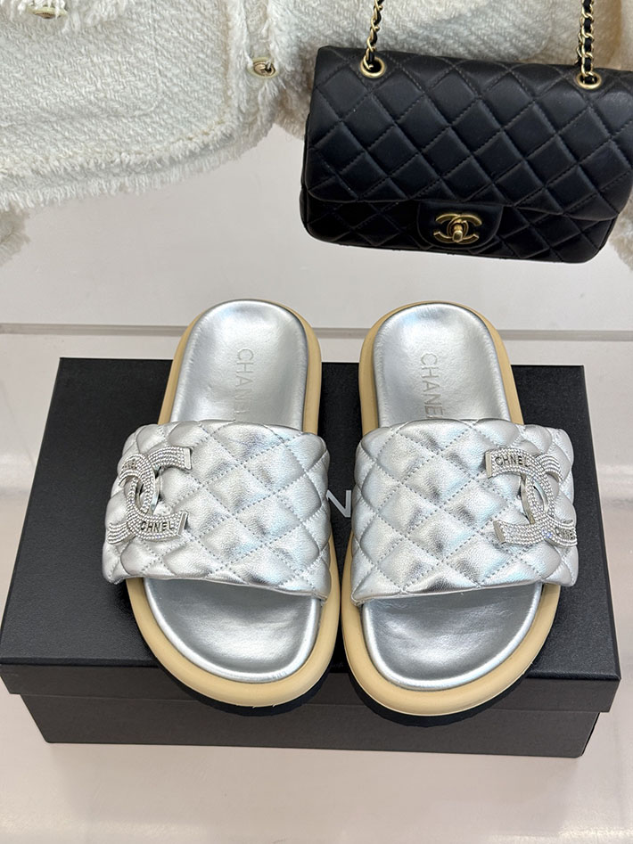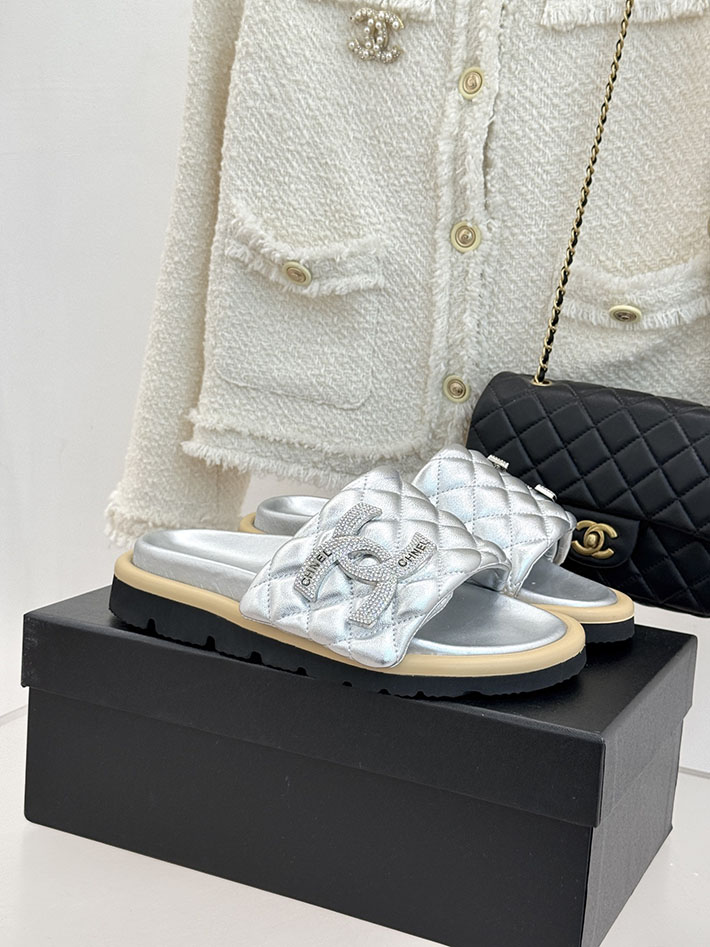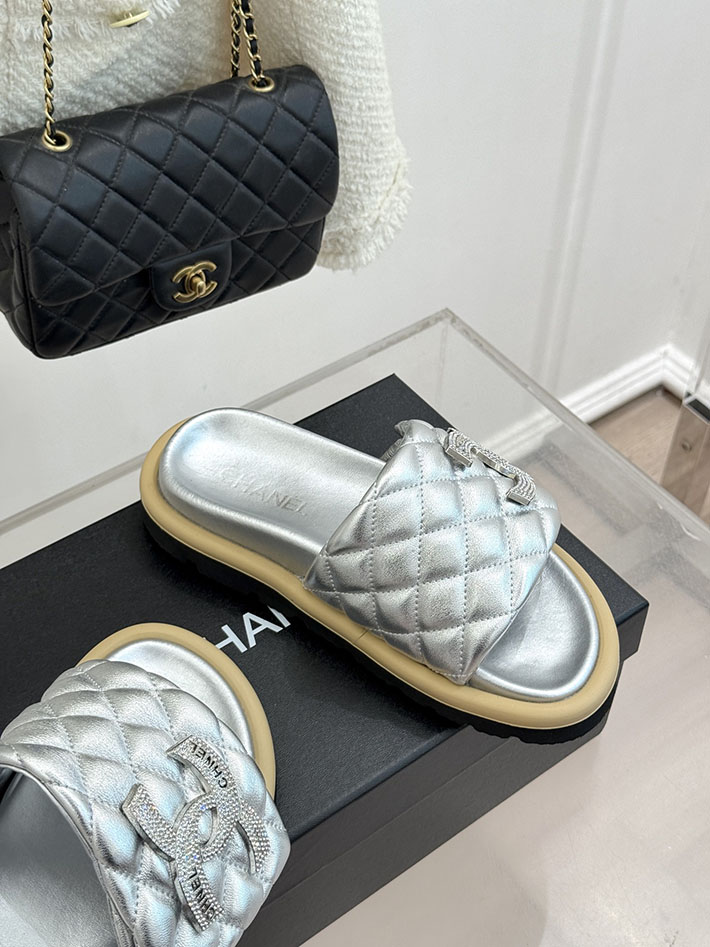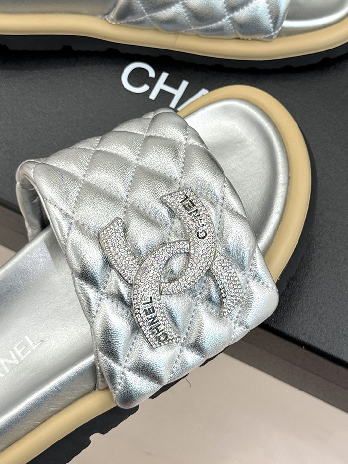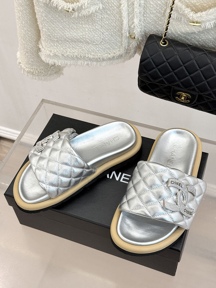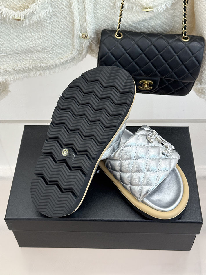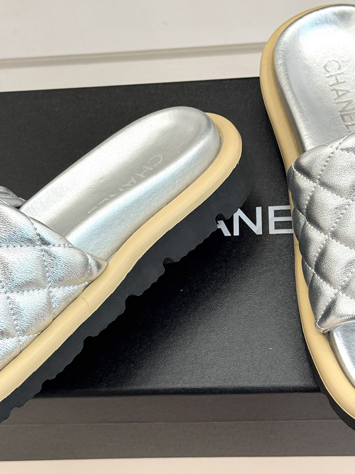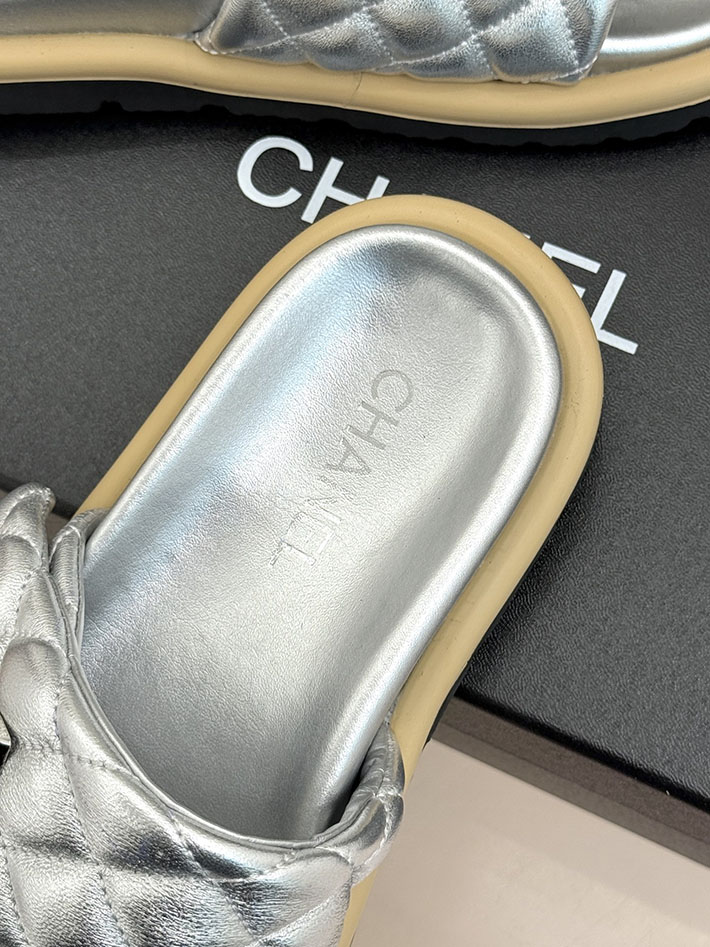 最高級シャネルスーパーコピー CHANEL 2026年春夏 新作 ラムスキン キルトウッド ミュール シルバー 2630814 シャネル サンダル 安い