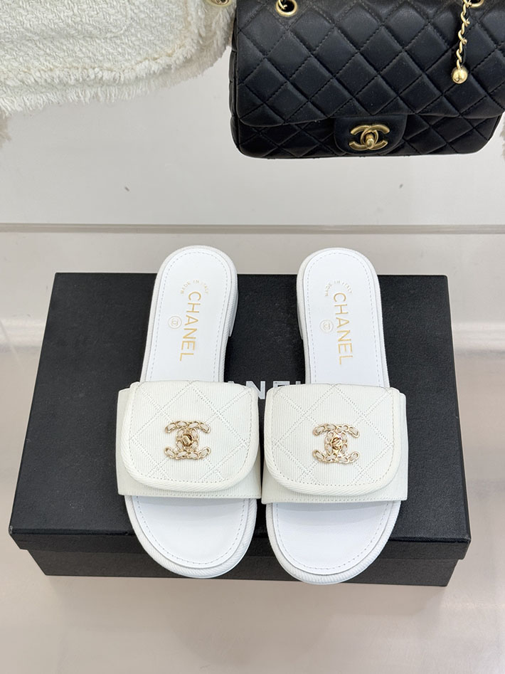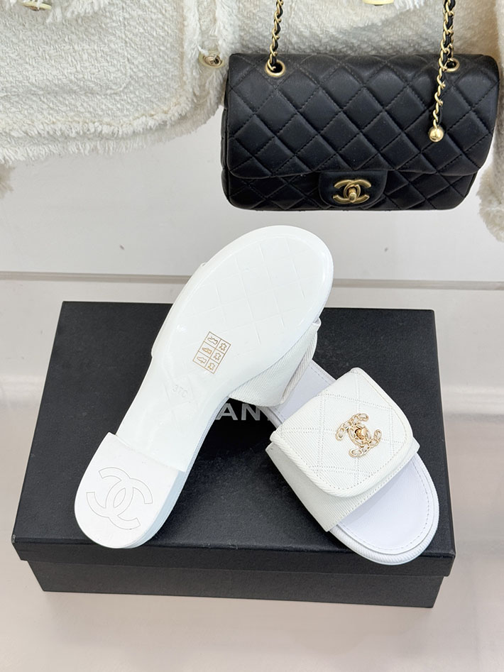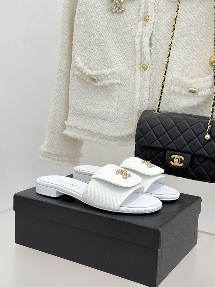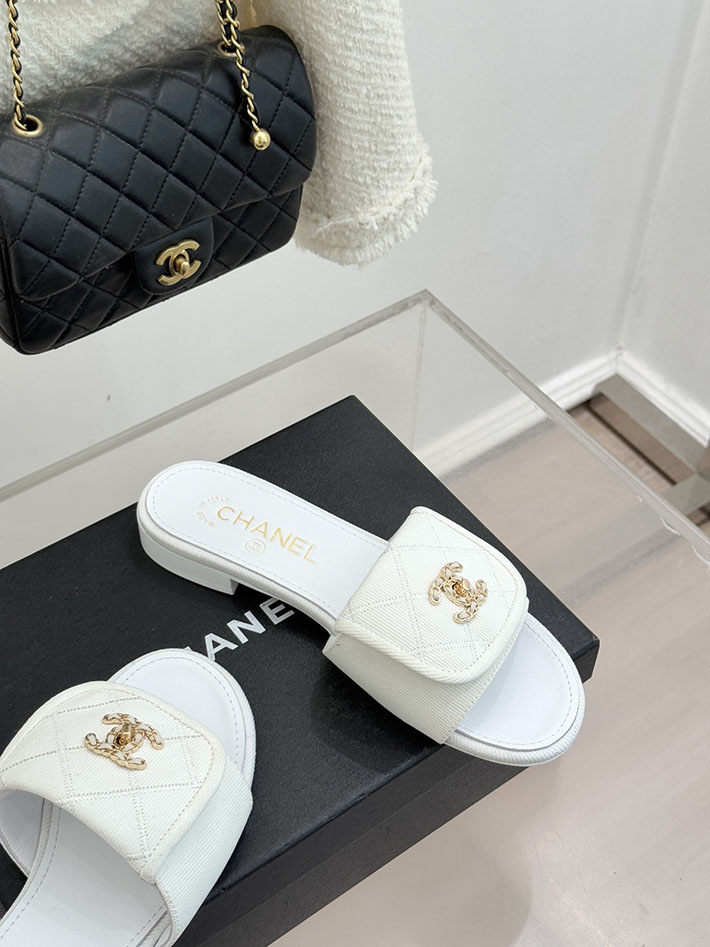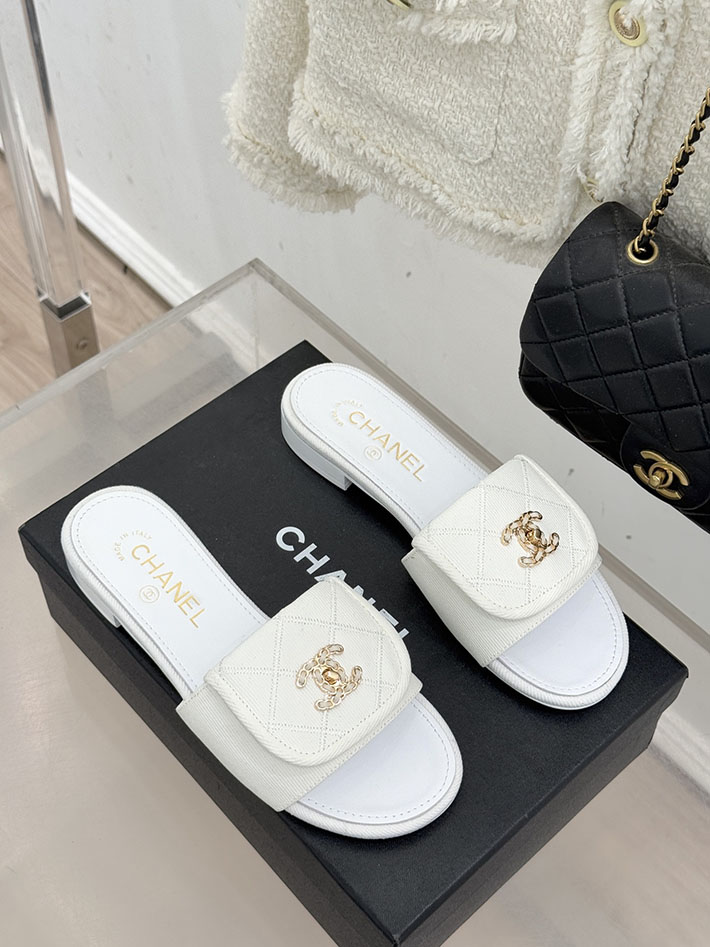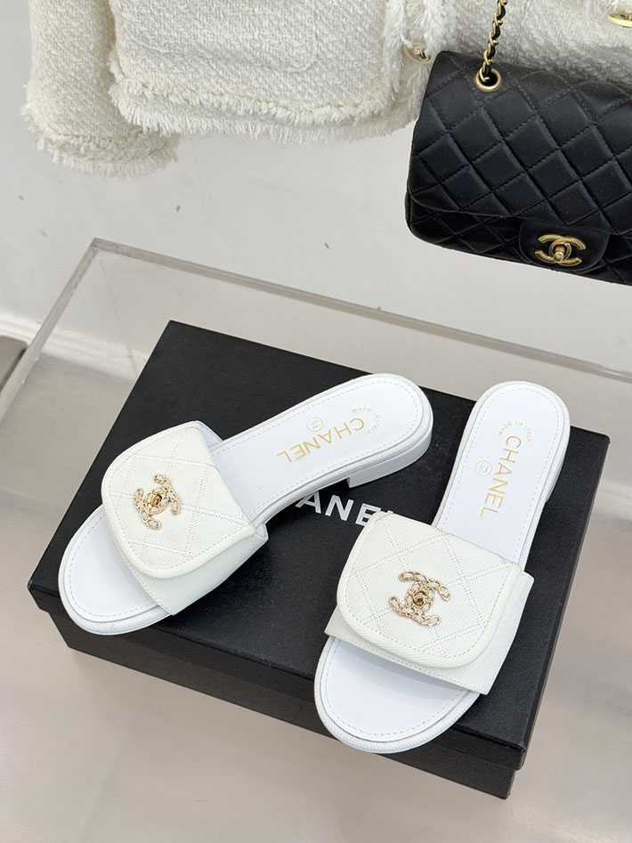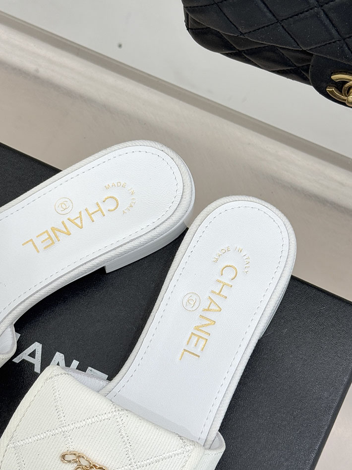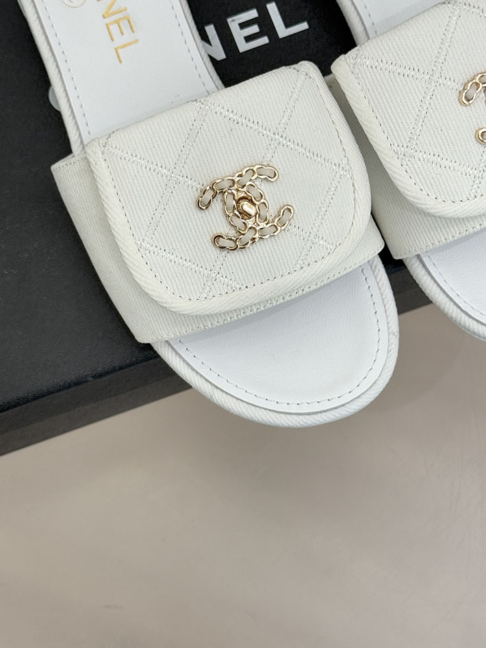 最高級シャネルスーパーコピー CHANEL CCロゴ ミュール コットン ビジュー ターンロック ホワイト 2631012 シャネル サンダル 新作