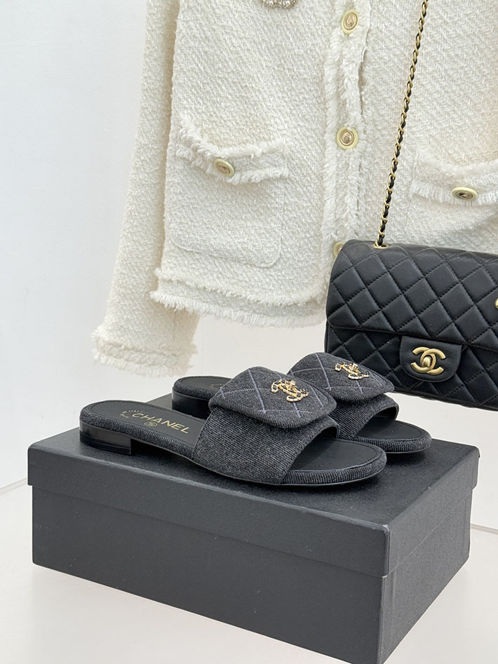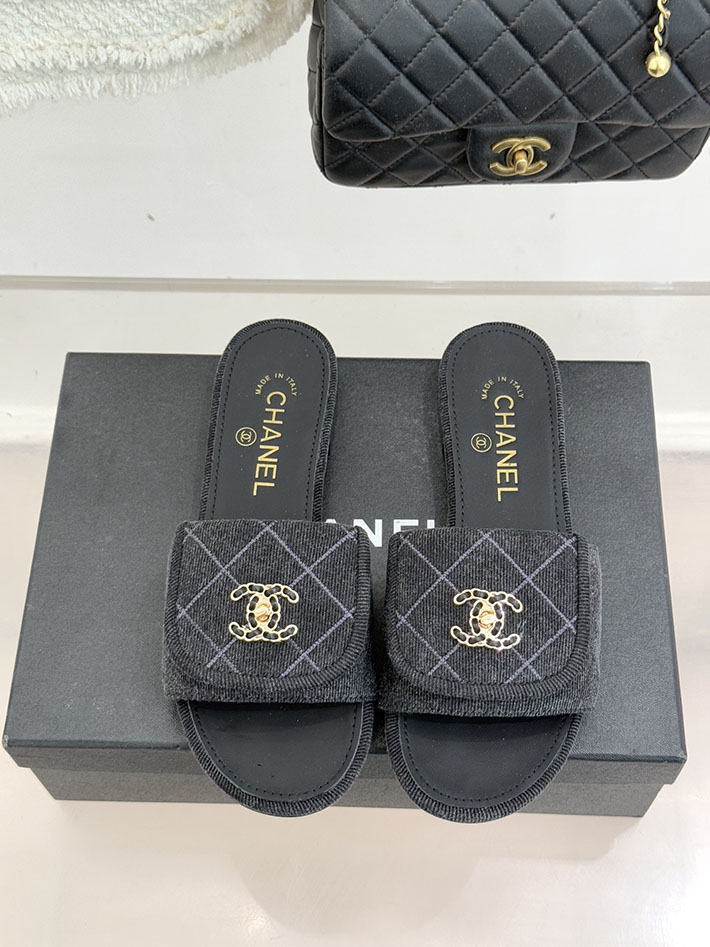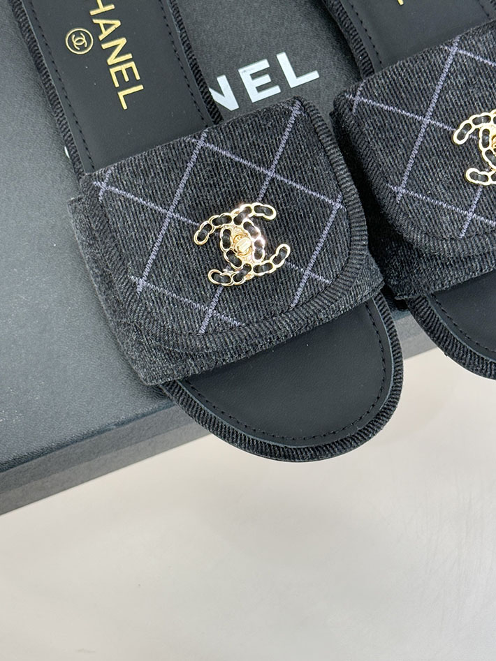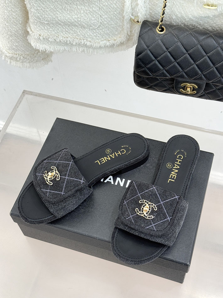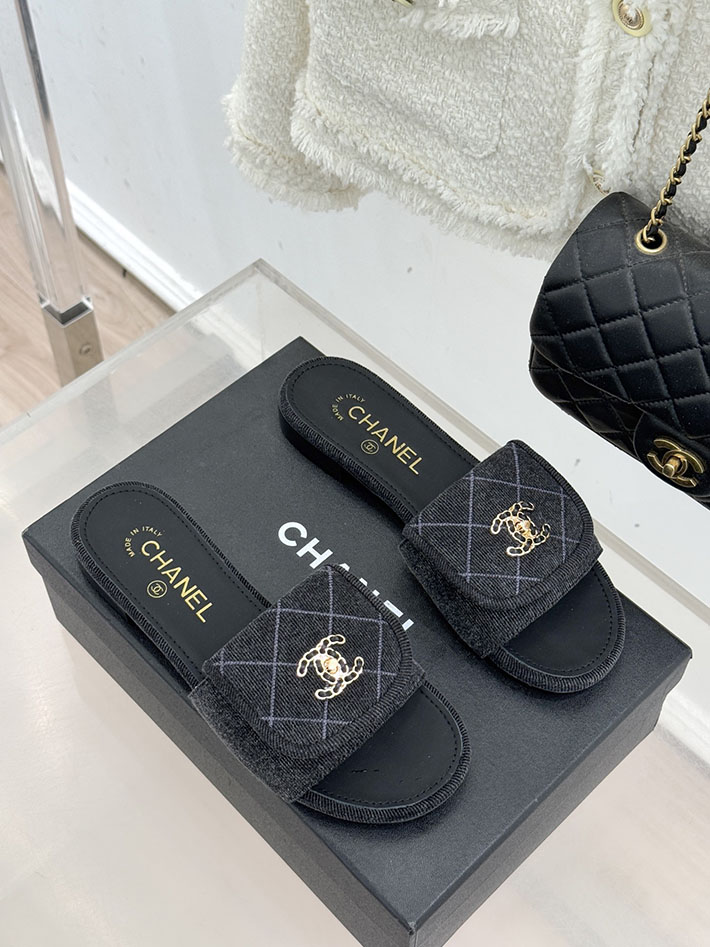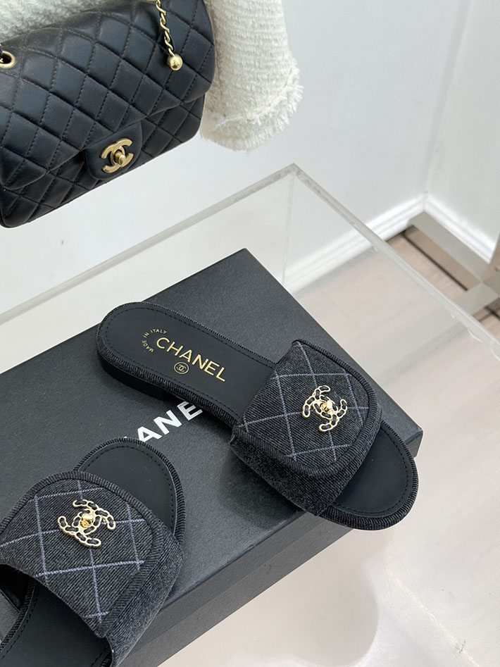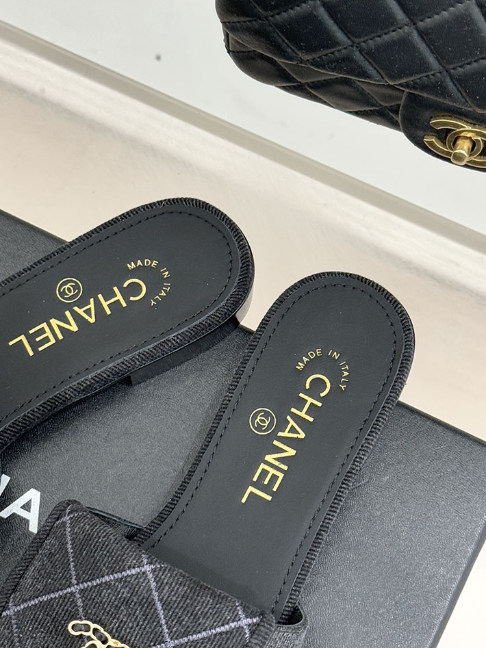 最高級シャネルスーパーコピー CHANEL CCロゴ ミュール コットン ビジュー ターンロック ブラック 2631013 レディース シャネル 靴