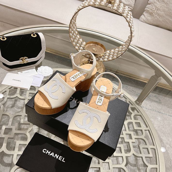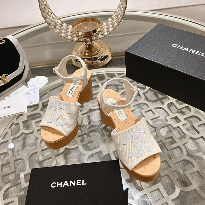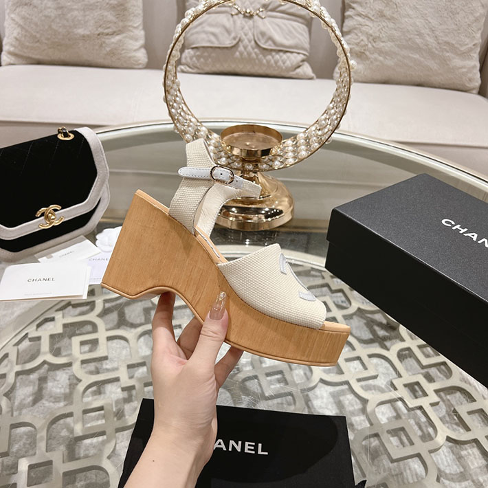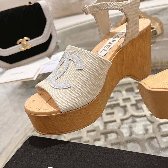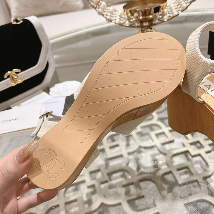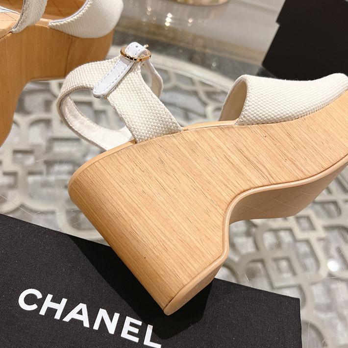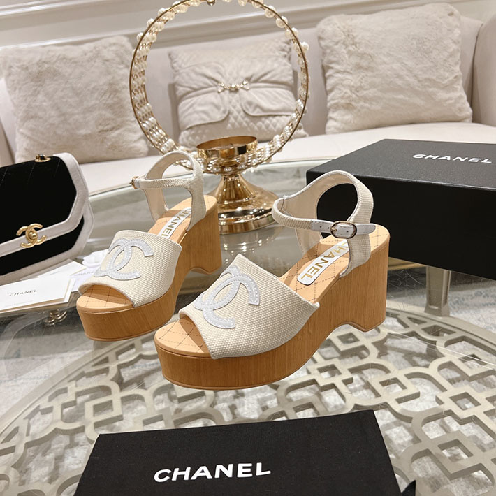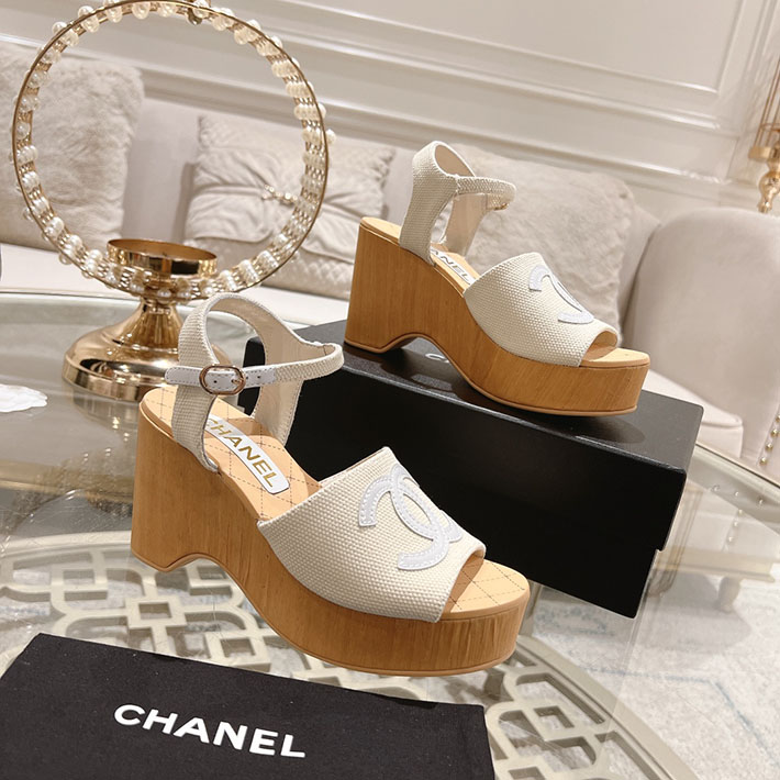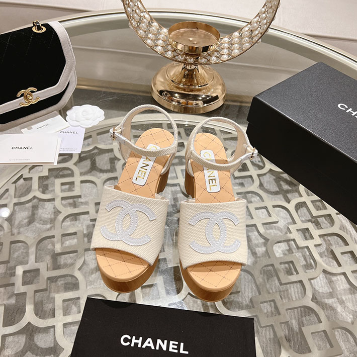最高級シャネルスーパーコピー靴 シャネルサンダルコピー ココマークウェッジソールサンダル ホワイト G45555 B15714 NC631