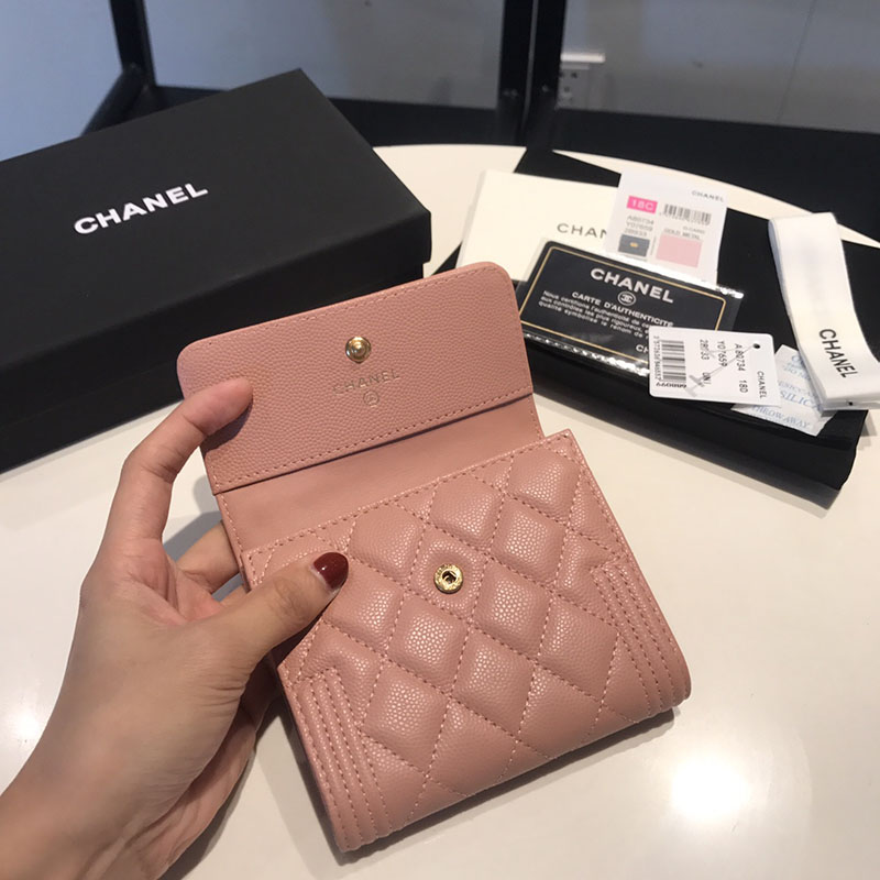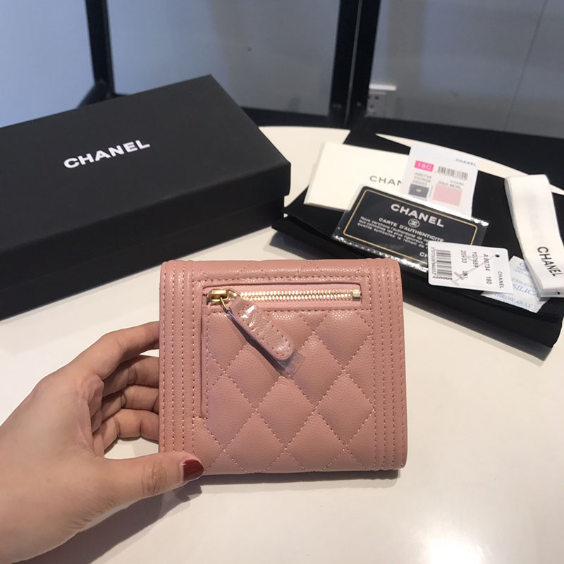 シャネルで人気の財布 CHANEL 三つ折り財布 BOY CHANELスモールウォレット A80734 サーモンピンク 2520327 シャネル 財布 ミニ 公式