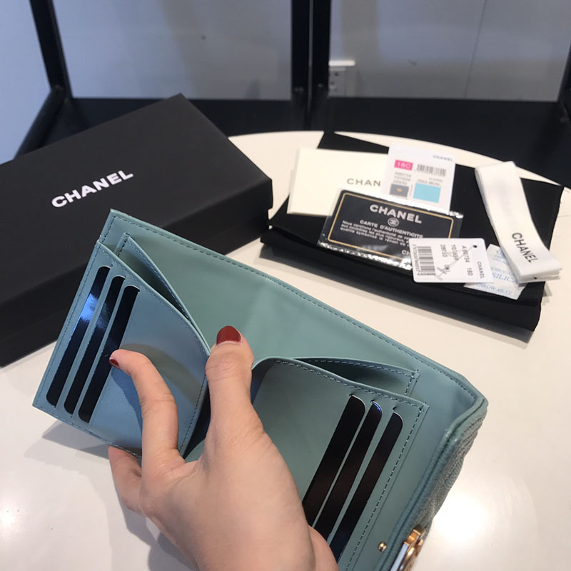 シャネルで人気の財布 CHANEL 三つ折り財布 BOY CHANELスモールウォレット A80734 スカイブルー 2520328 シャネル 財布 ミニ人気
