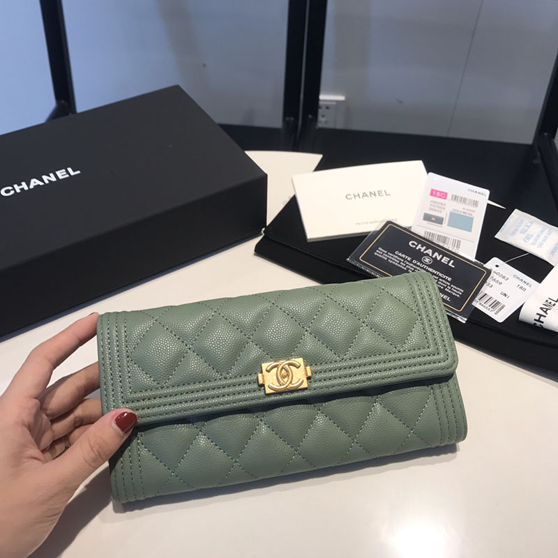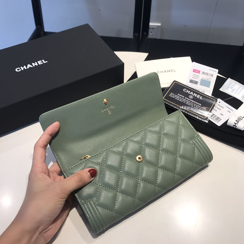 シャネルで人気の財布 CHANEL ボーイシャネル マトラッセ ココマーク 2つ折長財布 カーキ 2520332 ボーイシャネル 財布 人気