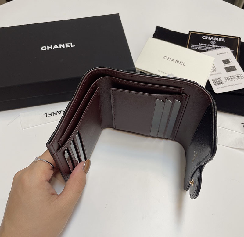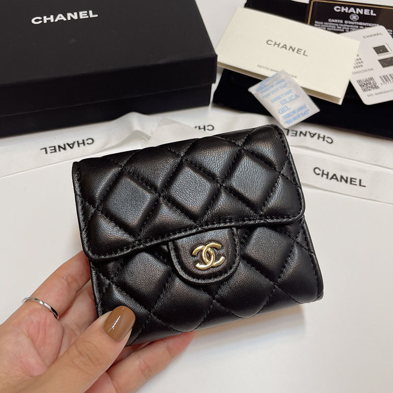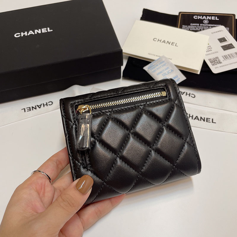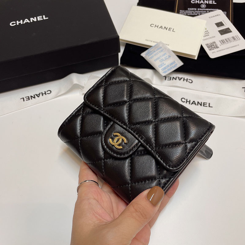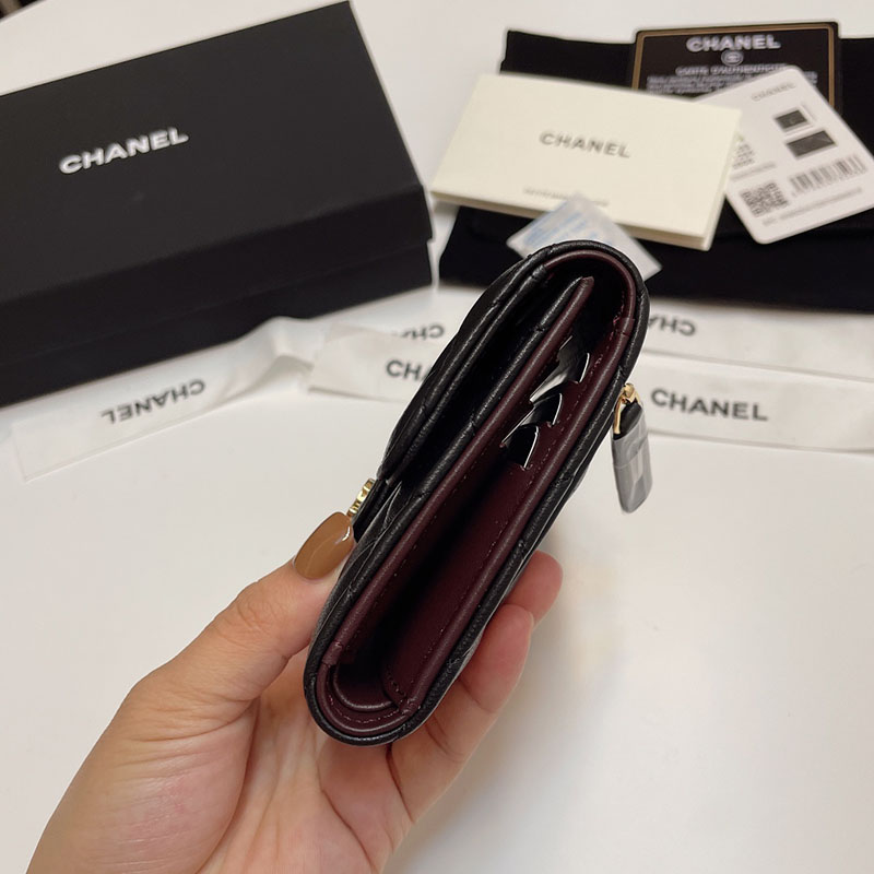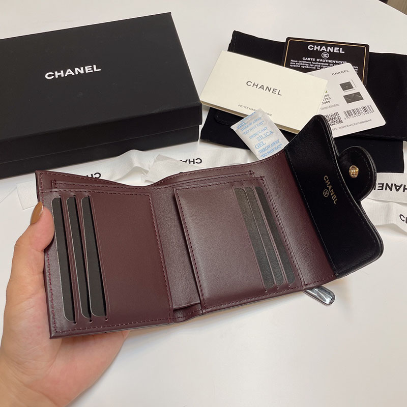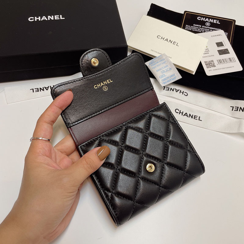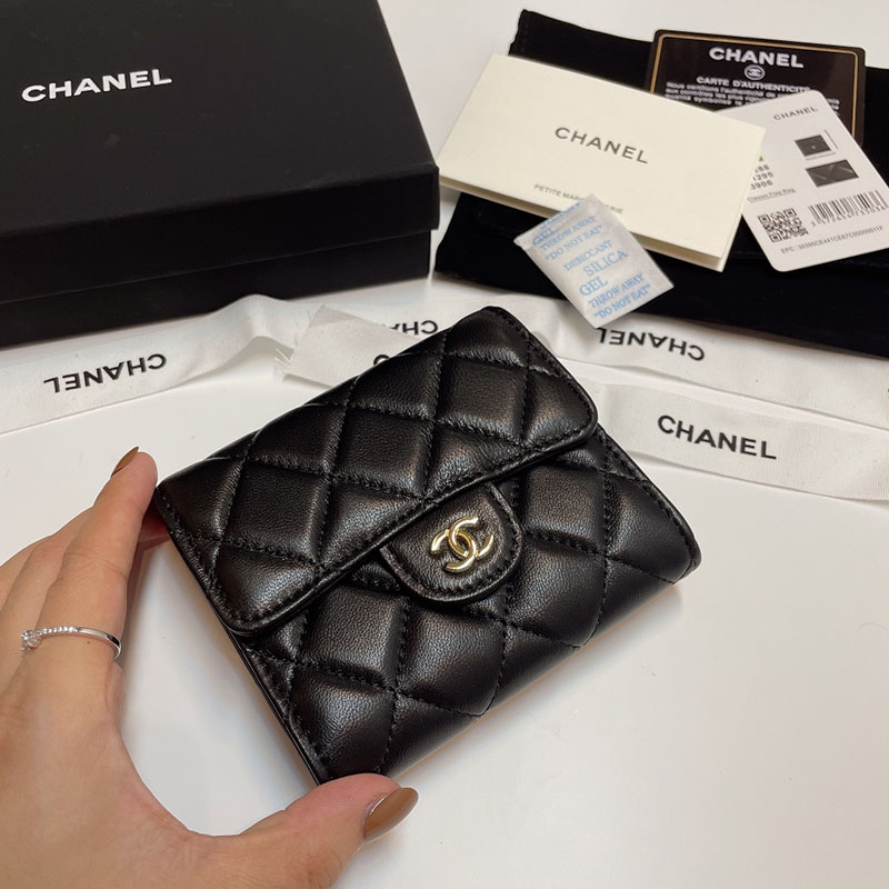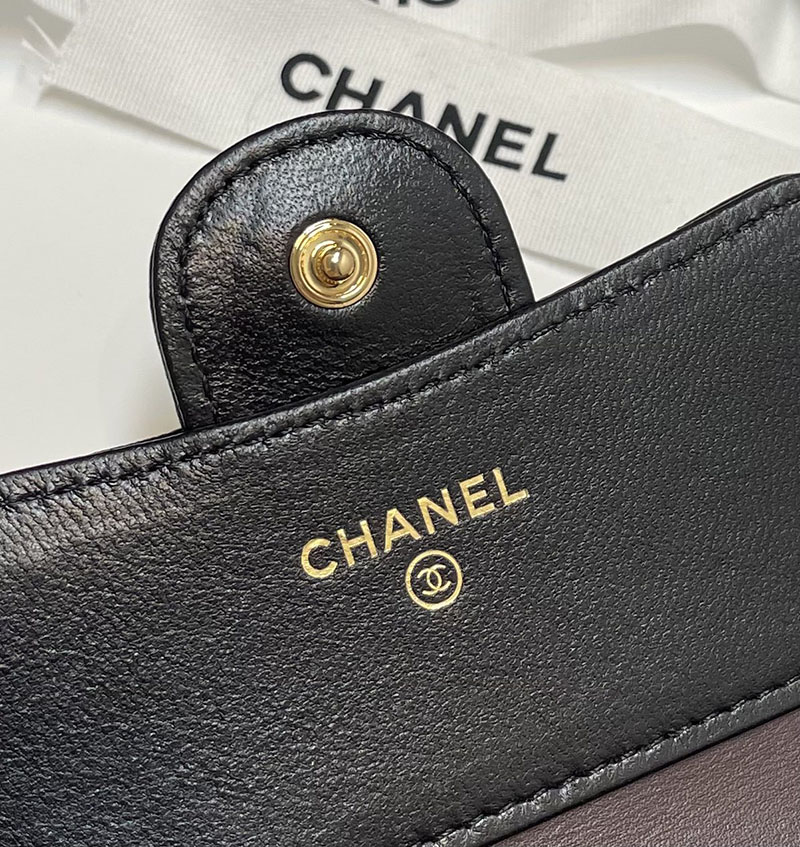 シャネルで人気の財布 CHANEL 3つ折り財布 小銭入れ付き レディース ラムスキン ブラック AP0231 Y01295 C3906