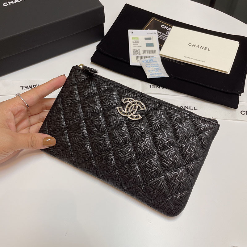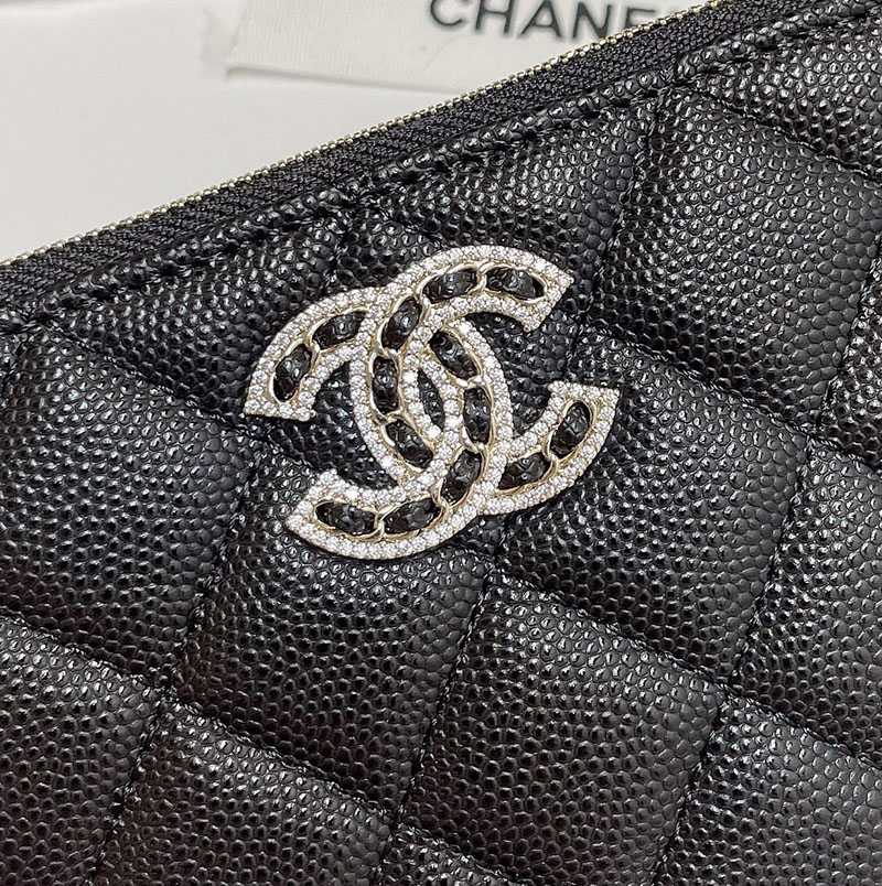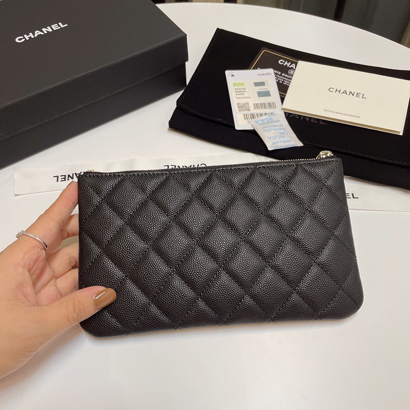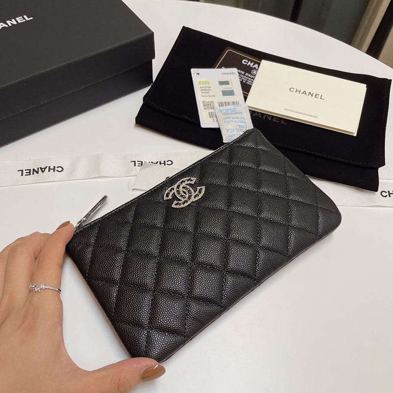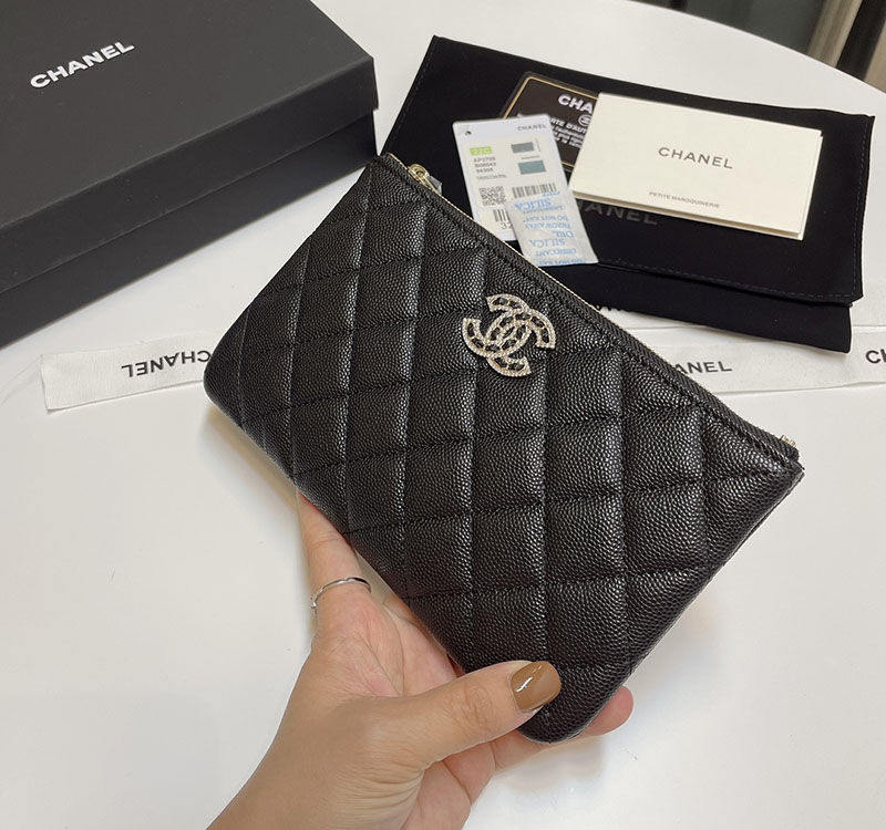 シャネルで人気の財布 CHANEL スモール ポーチ グレインド シャイニー カーフスキン ブラック AP2763 B08043 94305