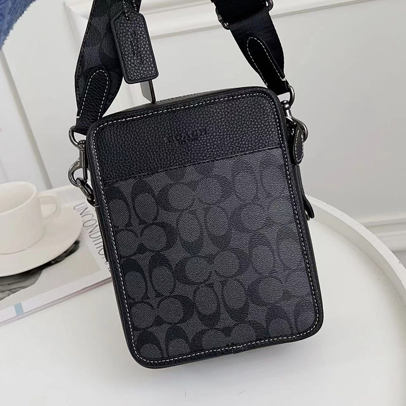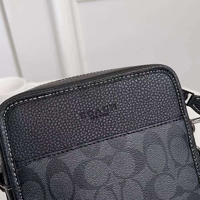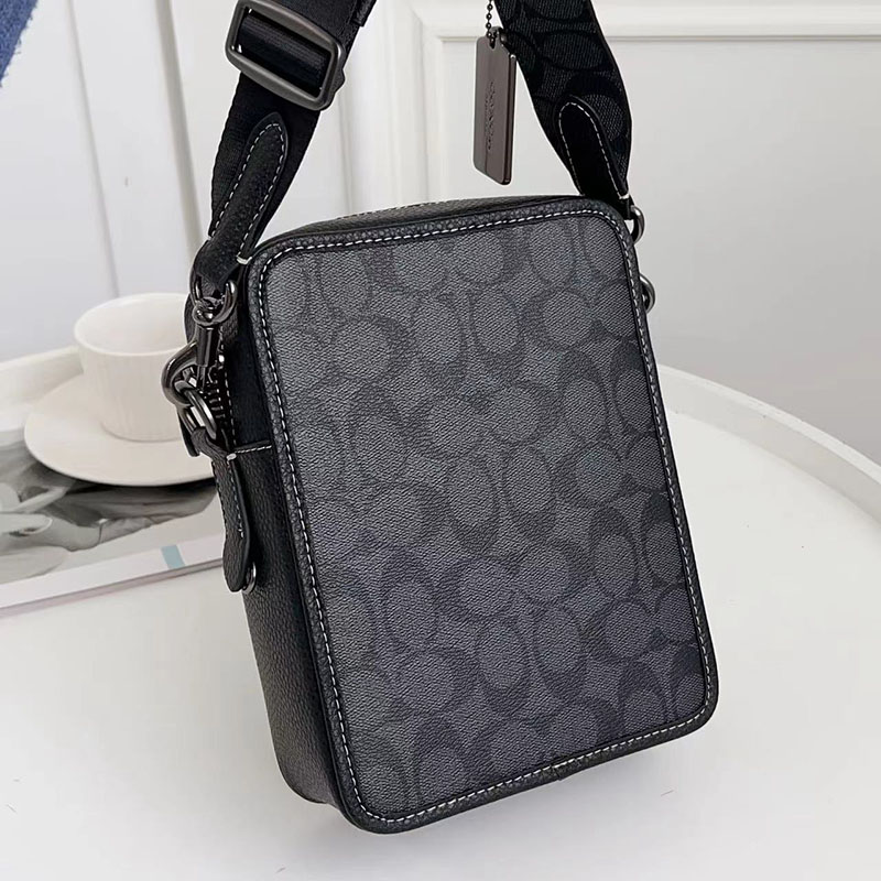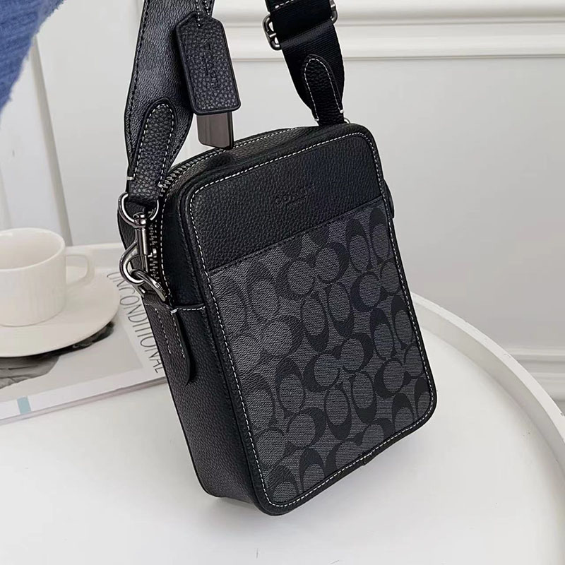 COACH CC090 QBMI5 サリバン クロスボディ ブロックド シグネチャー キャンバス チャコール/ブラック 超N品 コーチ バッグ メンズ ショルダー