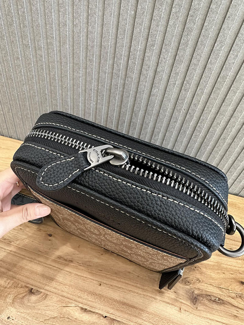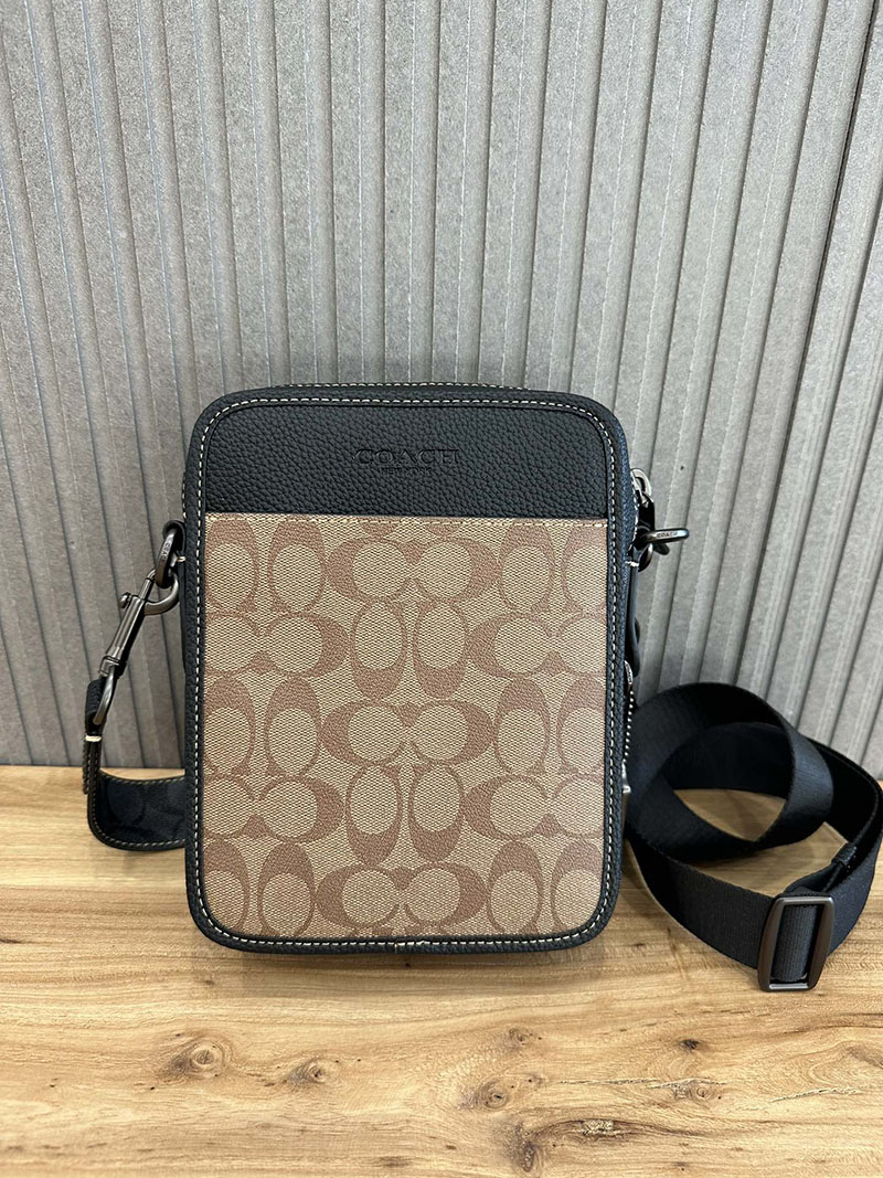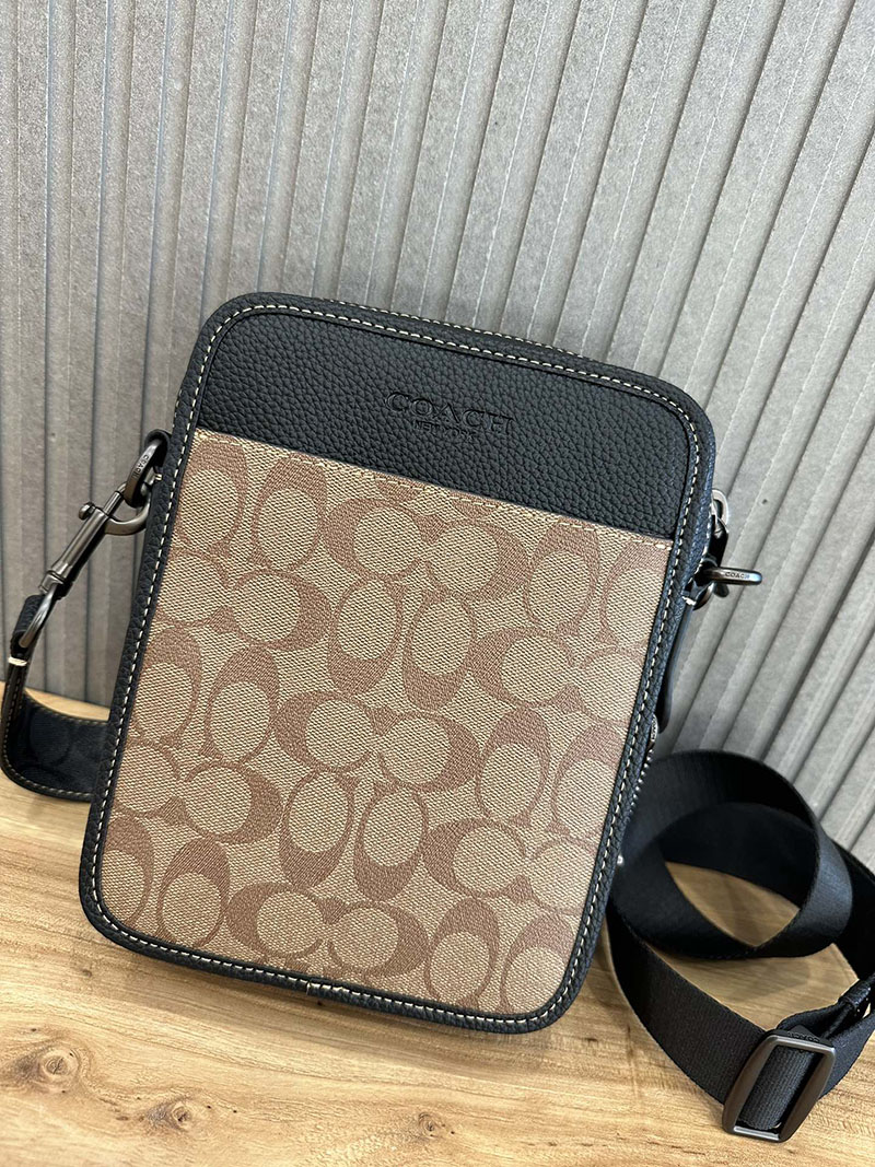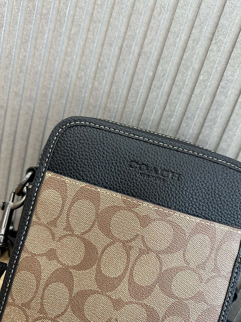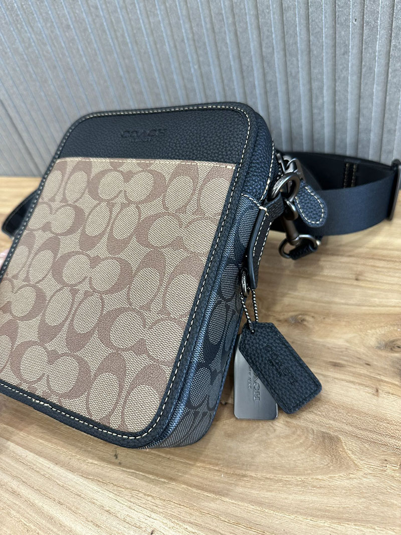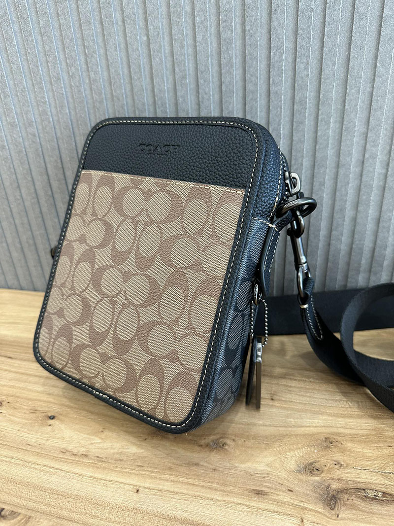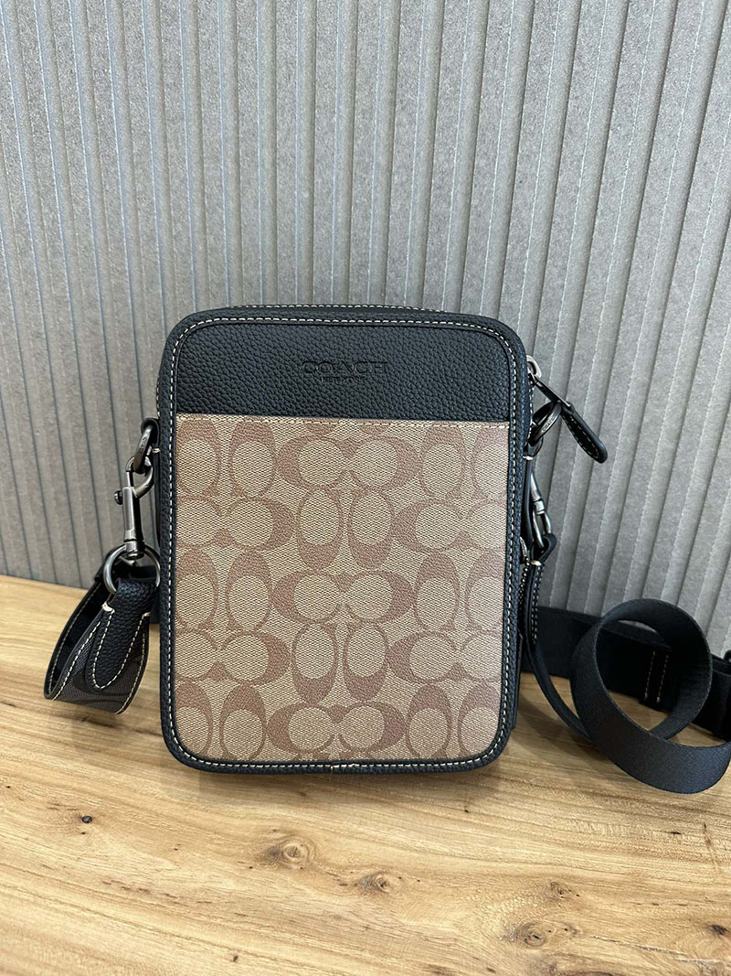 COACH CC090 QBTUP サリバン クロスボディ ブロックド シグネチャー キャンバス カーキ/チャコール 超N品 コーチ バッグ メンズ ショルダー