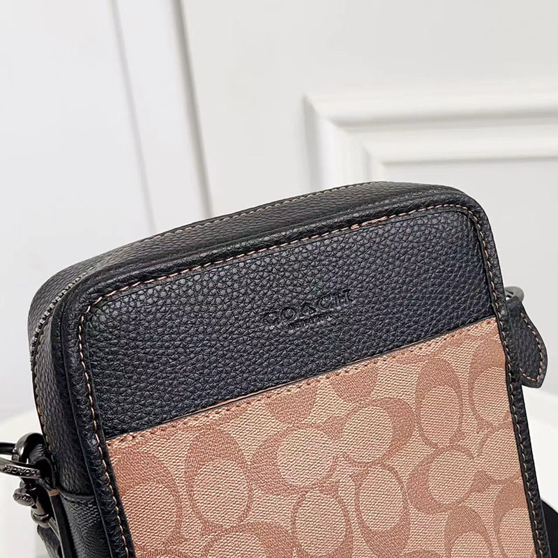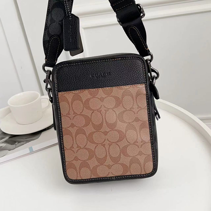 COACH CC090 QBTUP サリバン クロスボディ ブロックド シグネチャー キャンバス カーキ/チャコール 超N品 コーチ バッグ メンズ ショルダー