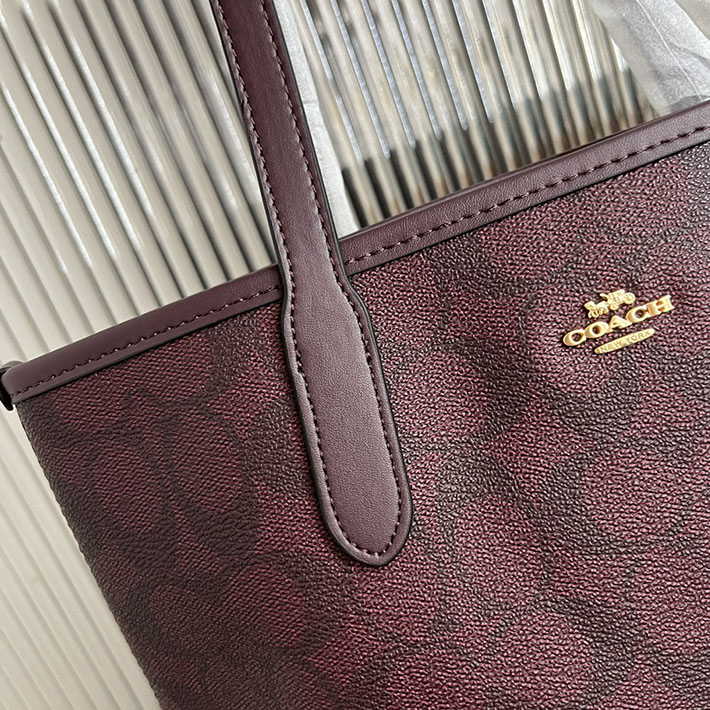 最高級 コーチバッグコピー ミニ シティ トート・シグネチャー キャンバス CN733 IMFCG メルロー ゴールド金具 コーチ トートバッグ 新作