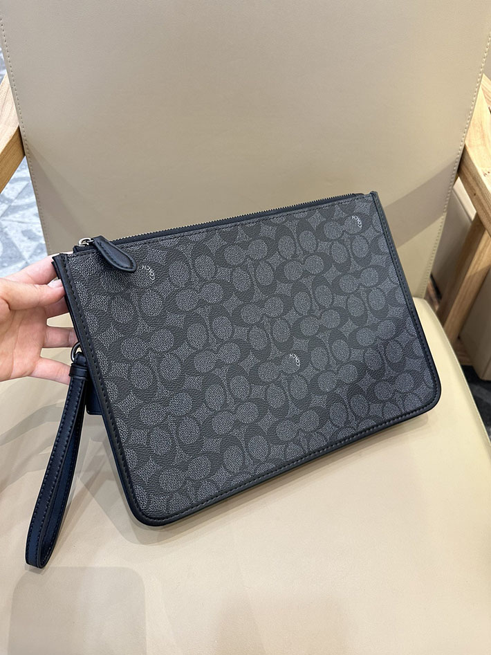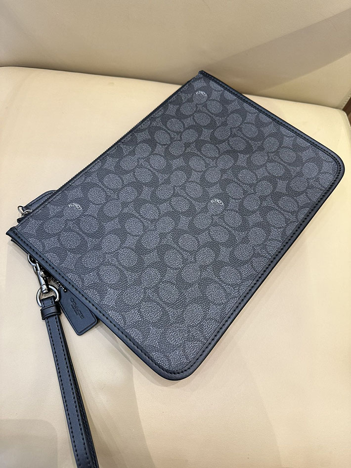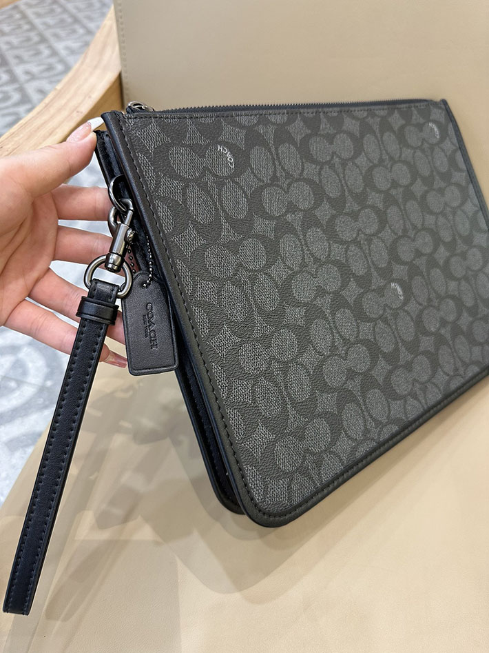 最高級 コーチバッグコピー チャーター ポーチ CR786 QBMI5 チャコール/ブラック シルバー金具 コーチ ポーチ メンズ