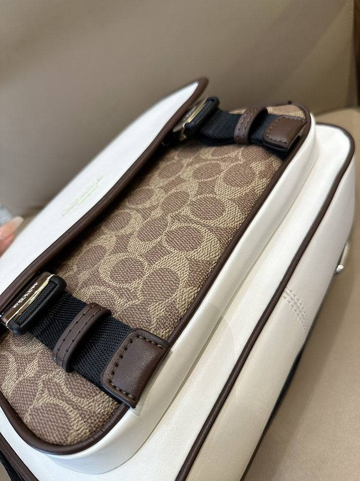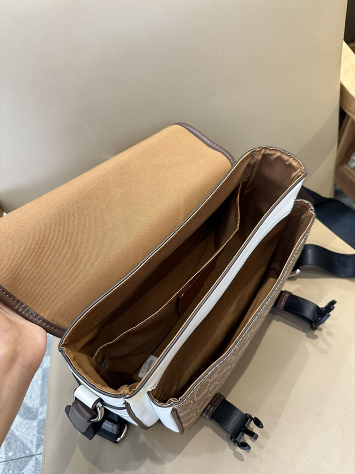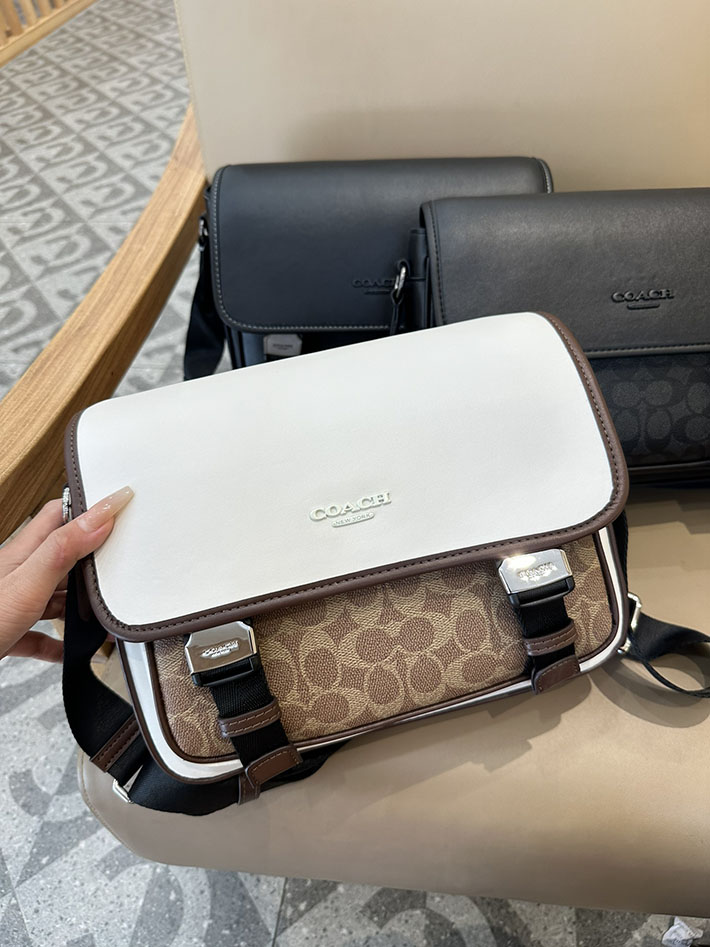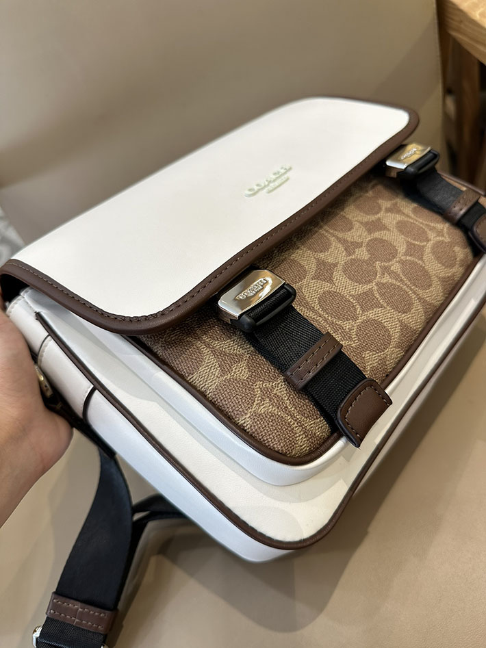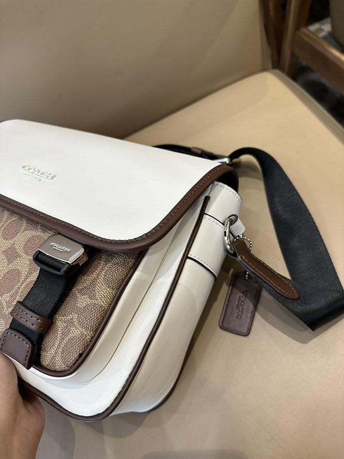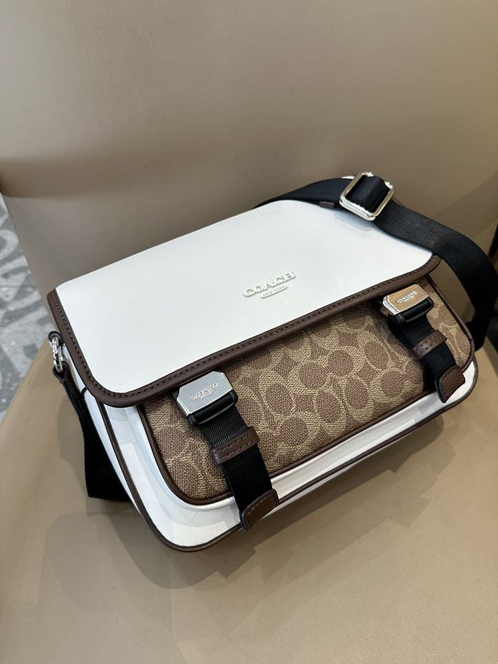 コーチ レーサー メッセンジャー・カラーブロック シグネチャー キャンバス CT753 SVX9K シルバー/チョーク/タン/メイプル シルバー金具 コーチ バッグ 斜めがけ 人気メンズ