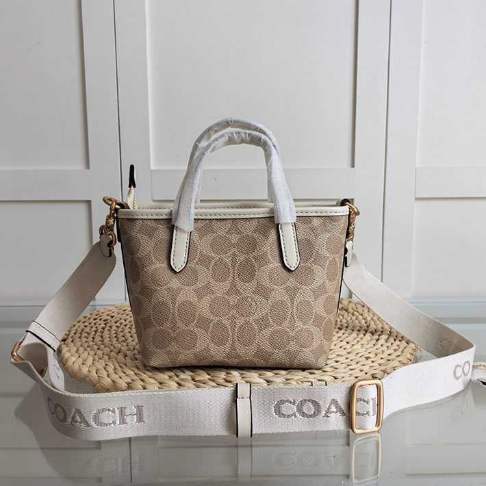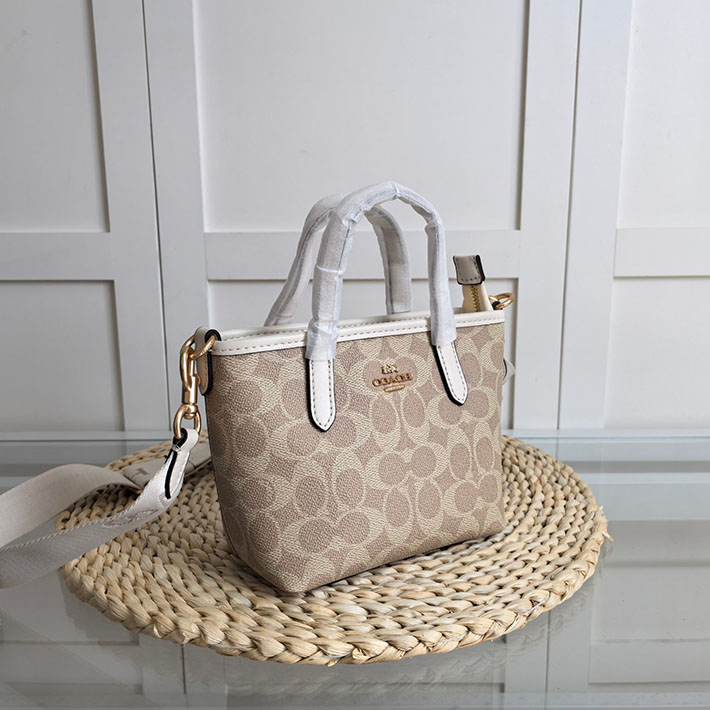 最高級 コーチバッグコピー シティ ミニ トート バッグ・シグネチャー キャンバス CW032 IMXDM サンド/チョーク ゴールド金具 コーチ トートバッグ 人気ランキング