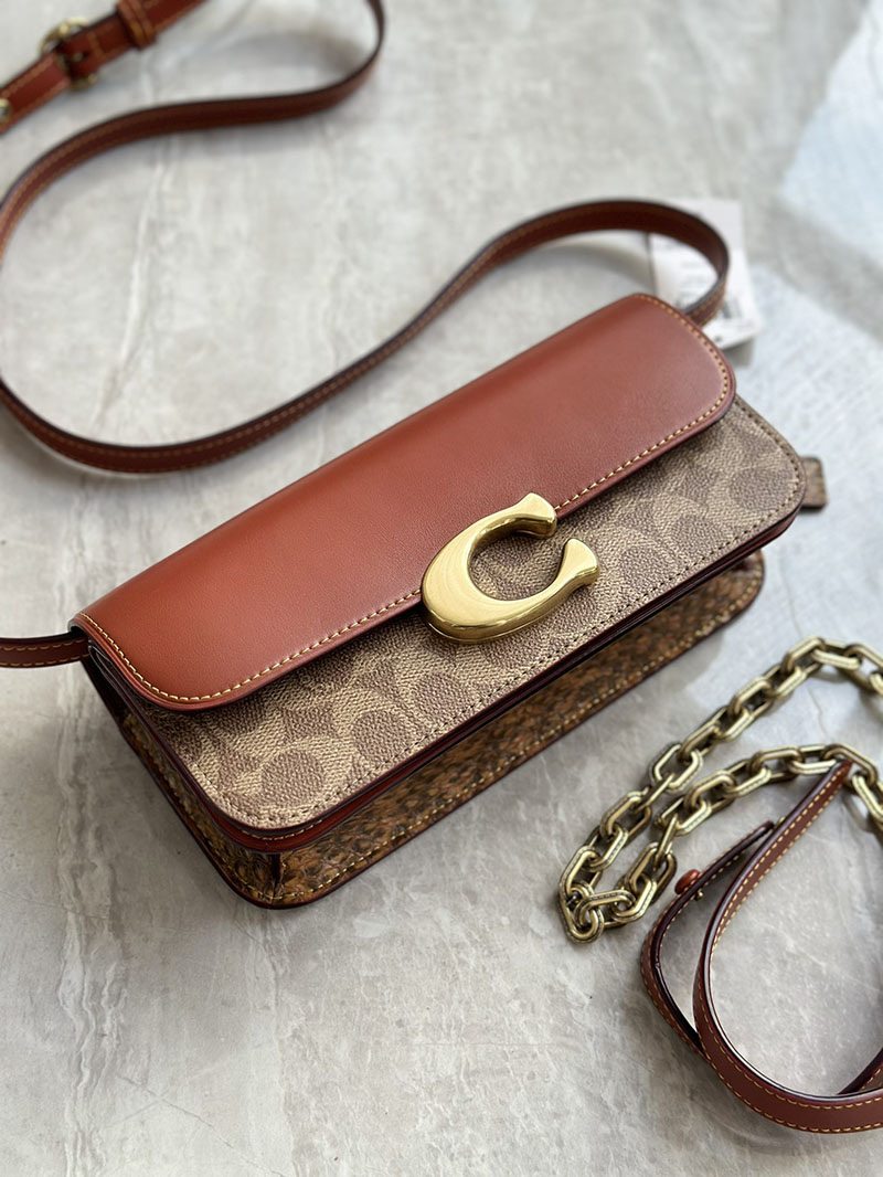 COACH CP131 B4XHG アイドル バッグ 23・シグネチャー キャンバス・スネークスキン ディテール コーチ ショルダーバッグ