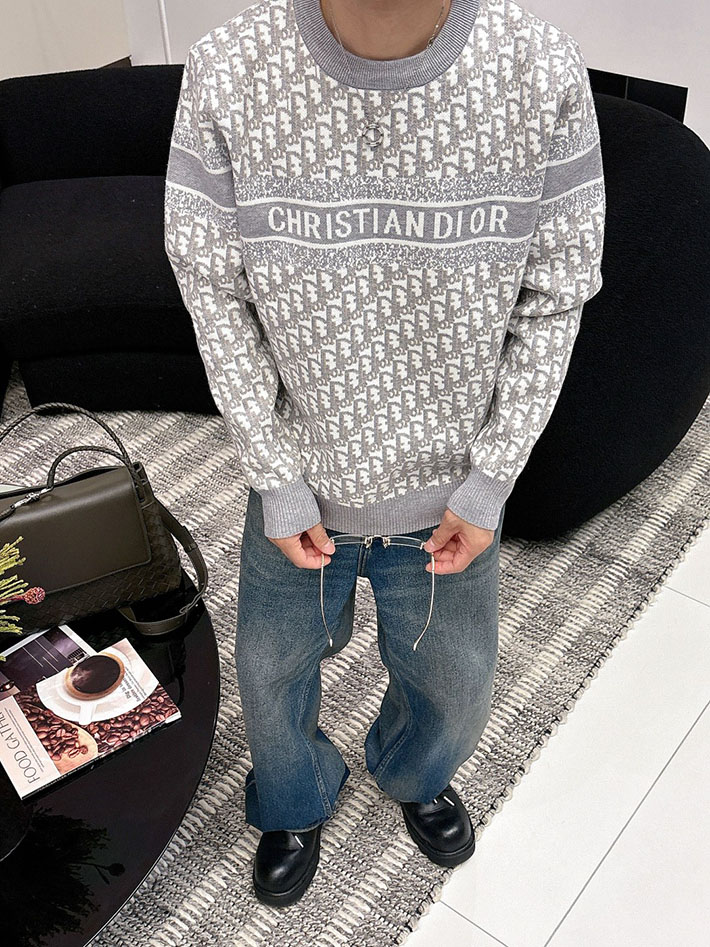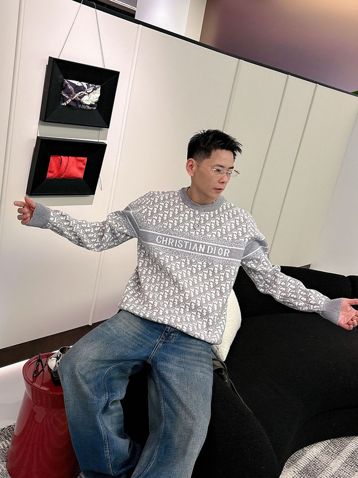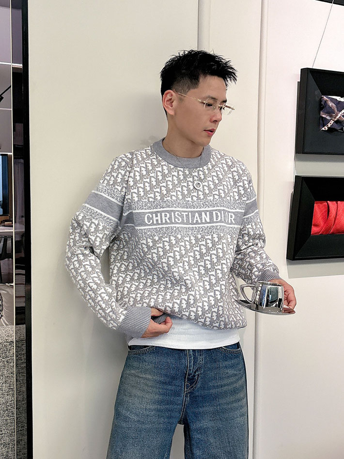 最高級ディオールスーパーコピー ディオールトレーナーコピー セーター グレー/ホワイト 2524607 メンズ セーター おしゃれ ブランド