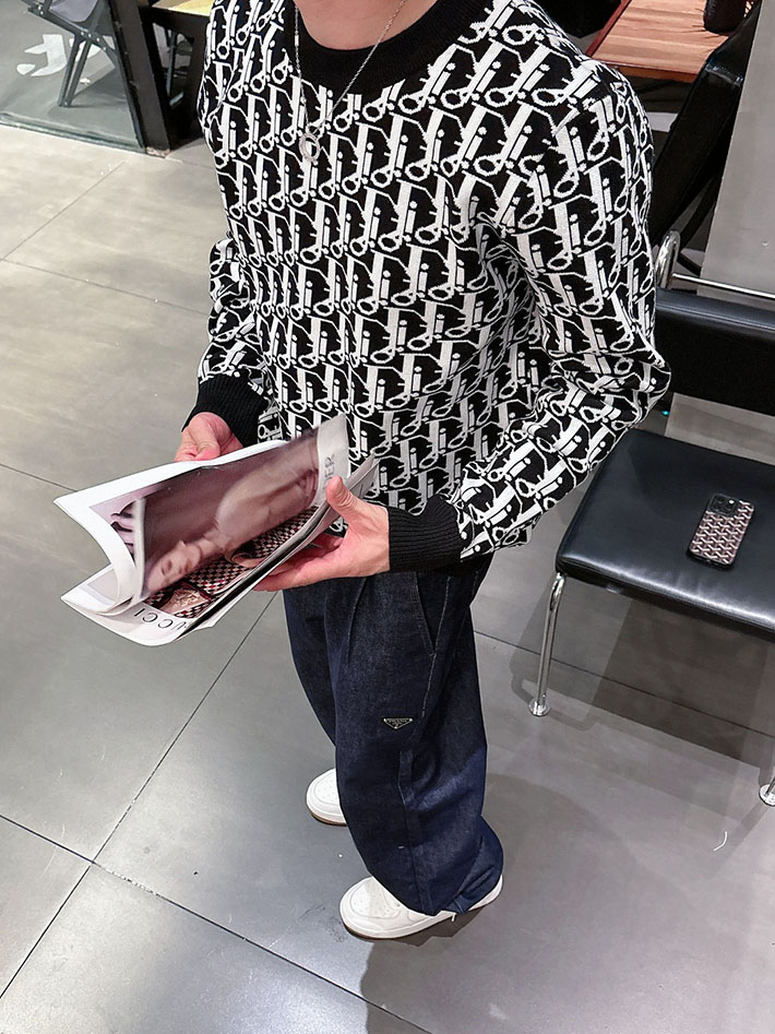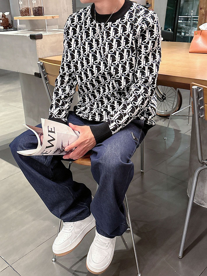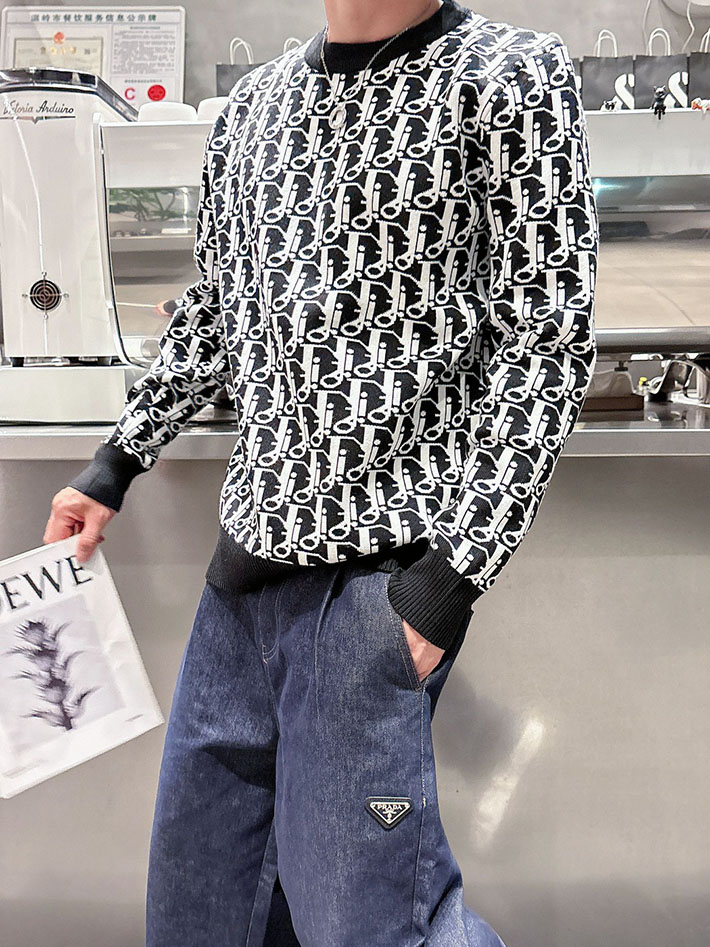 最高級ディオールスーパーコピー ディオールトレーナーコピー セーター ホワイト/ブラック 2524615 セーター メンズ 20代