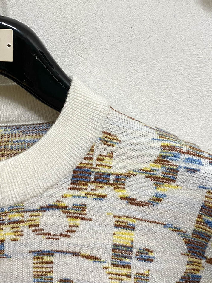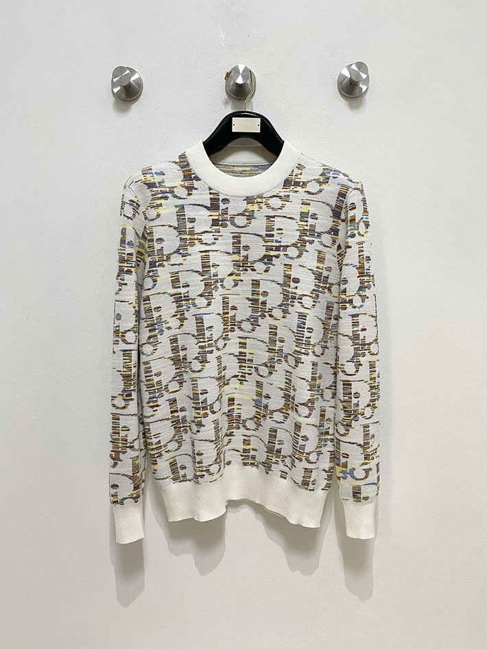 最高級ディオールスーパーコピー Dior リフレクティブオブリーク総柄ニット ホワイト 2524884 ディオール トレーナー メンズ