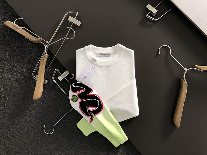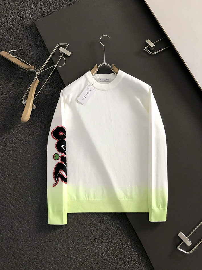 最高級ディオールスーパーコピー Kaws Diorウール ニットセーター ホワイト イエローグリーン 2525271 ディオール ニット 長袖