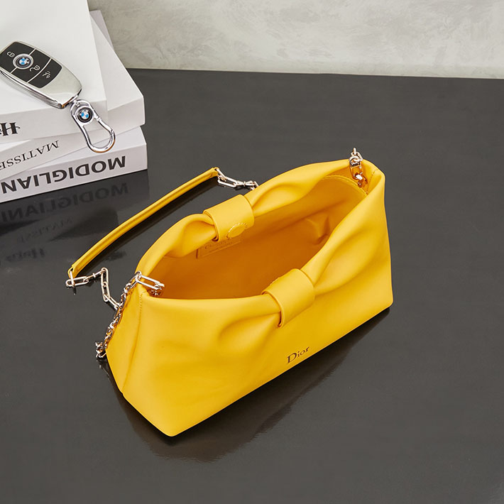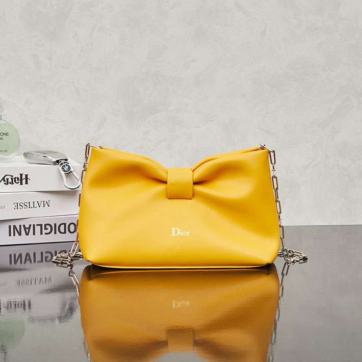 ディオール バッグ 人気 N品 ディオール Dior Bow バッグ スモール ラムスキン イエロー 2629169 ディオール バッグ 安い