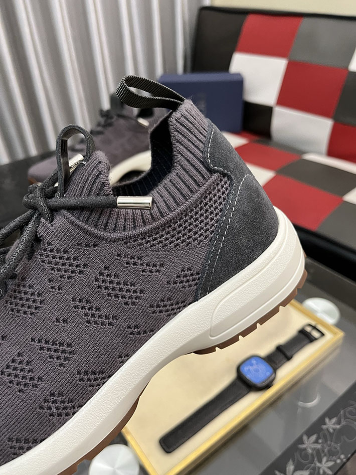 すっきりとしたシルエットと、ディオールらしいクチュールスタイルのディテールが特徴的な「B80 ラウンジ」スニーカー。カシミヤ、ウール、シルクを使用したグレーのニットに、アイコニックな「カナージュ」モチーフをさりげなくあしらい、同系色のスエードパネルをかかとに、Diorのエンボス入りパッチをシュータンに施しました。軽やかな履き心地と抜群の快適さを兼ね備えたデザイン。伸縮性のある履き口、リアタブ、スエードの装飾シューレースを備えているため、さっと履くことができます。Diorシグネチャーが映える、ノッチ入りの厚底スカルプテッド ラバーソールで仕上げました。「Dior Icons (ディオール アイコンズ)」カプセルコレクションのどんなルックとも相性抜群のスニーカーです。