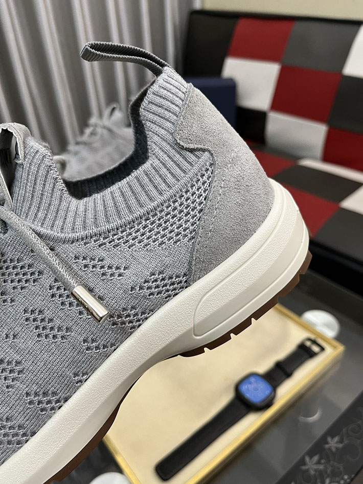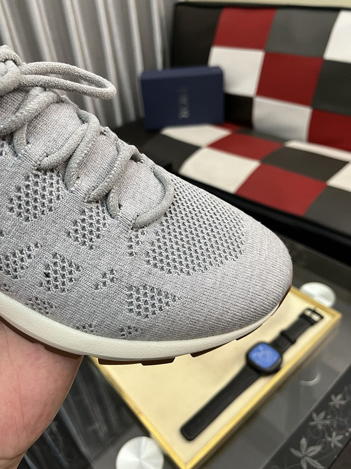 2025年ウィンターシーズンの新作、「B80 ラウンジ」スニーカー。すっきりとしたシルエットと、ディオールらしいクチュールスタイルのディテールが特徴です。カシミヤ、ウール、シルクを使用したディオール グレーのニットに、アイコニックな「カナージュ」モチーフをさりげなくあしらい、同系色のスエードパネルをかかとに、Diorのエンボス入りパッチをシュータンに施しました。軽やかな履き心地と抜群の快適さを兼ね備えたデザイン。伸縮性のある履き口、リアタブ、スエードの装飾シューレースを備えているため、さっと履くことができます。Diorシグネチャーが映える、ノッチ入りの厚底スカルプテッド ラバーソールで仕上げました。「Dior Icons (ディオール アイコンズ)」カプセルコレクションのどんなルックとも相性抜群のスニーカーです。