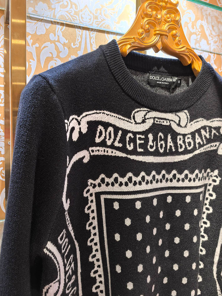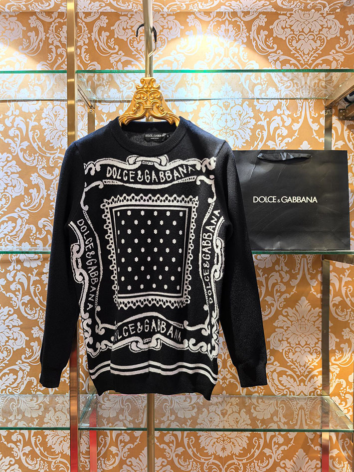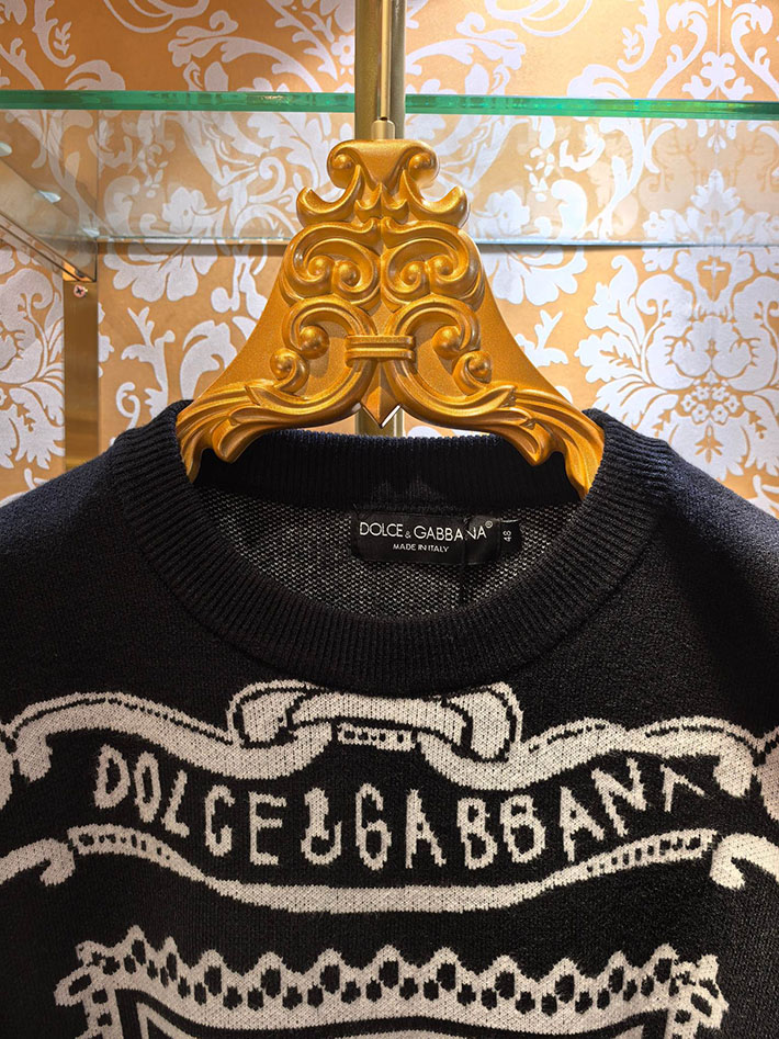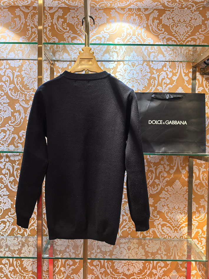 最高級D&Gスーパーコピー ドルチェ&ガッバーナ 刺繍入りウールラウンドネックセーター ブラック 2525282 ドルガバ トレーナー メンズ