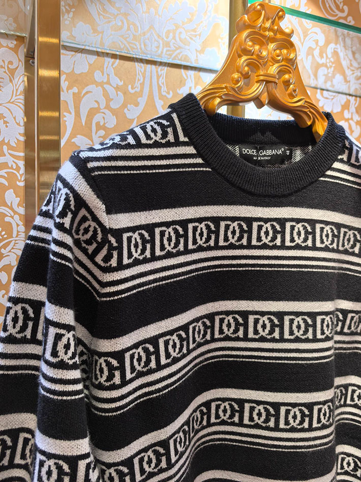 最高級D&Gスーパーコピー ドルチェ&ガッバーナ ロゴ シルク クルーネック プルオーバー ブラック 2525283 ドルガバ トレーナー メンズ